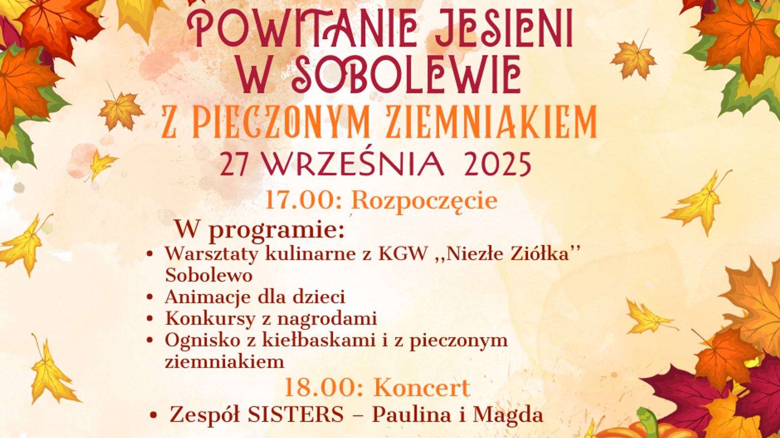 Kulminacyjnym punktem wydarzenia będzie koncert zespołu SISTERS – Pauliny i Magdy, który rozpocznie się o godz. 18:00. To gwarancja muzycznych emocji i świetnej zabawy dla wszystkich uczestników.