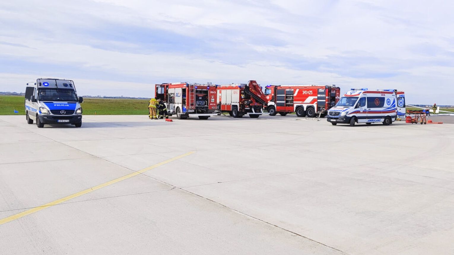 Ćwiczenia mają charakter treningowy i nie stanowią zagrożenia dla osób postronnych ani użytkowników lotniska.