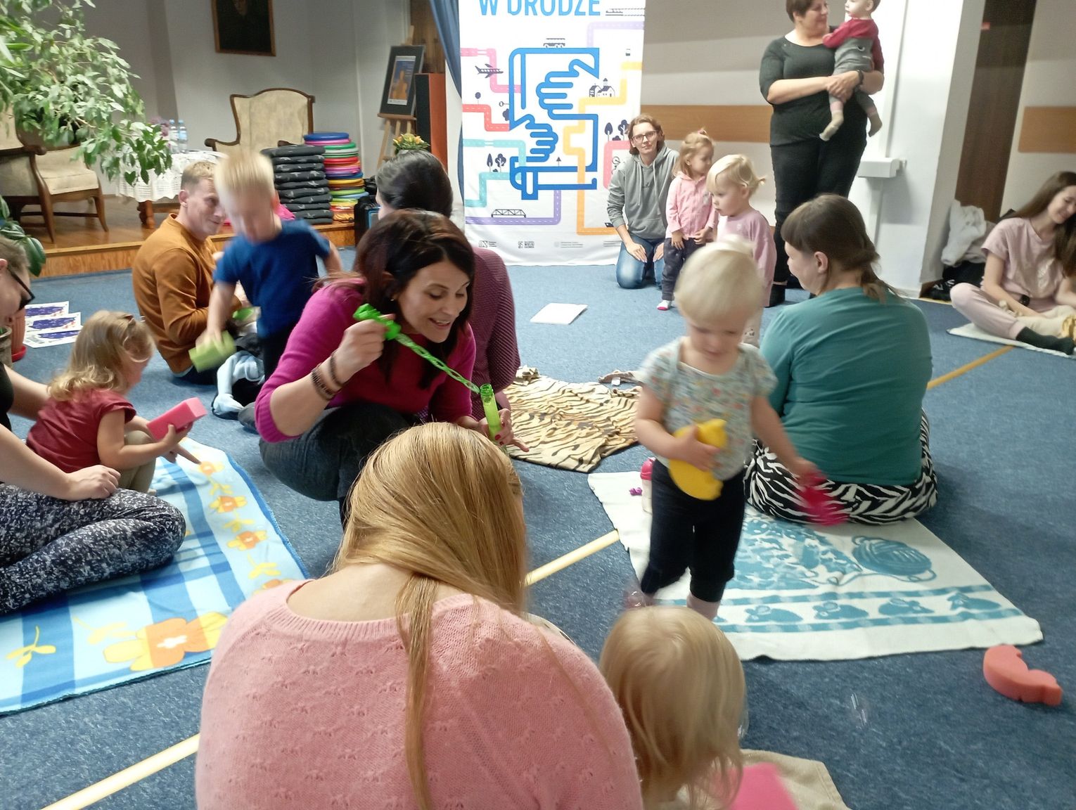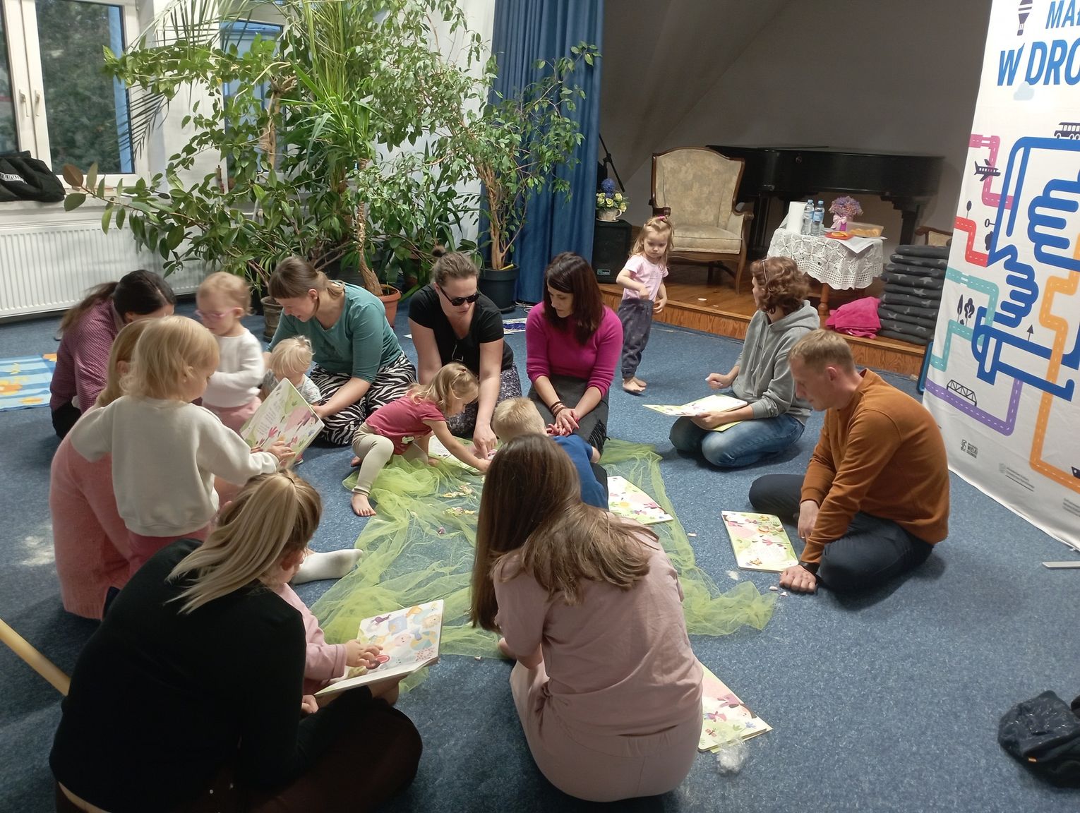 Warsztaty „Mała książka w drodze” stały się przestrzenią spotkania rodziców, wymiany doświadczeń i inspiracji. Uczestnicy mogli spróbować różnych technik czytania – od głośnego i ekspresyjnego po delikatne, kojące, wspierające rozwój zmysłów.