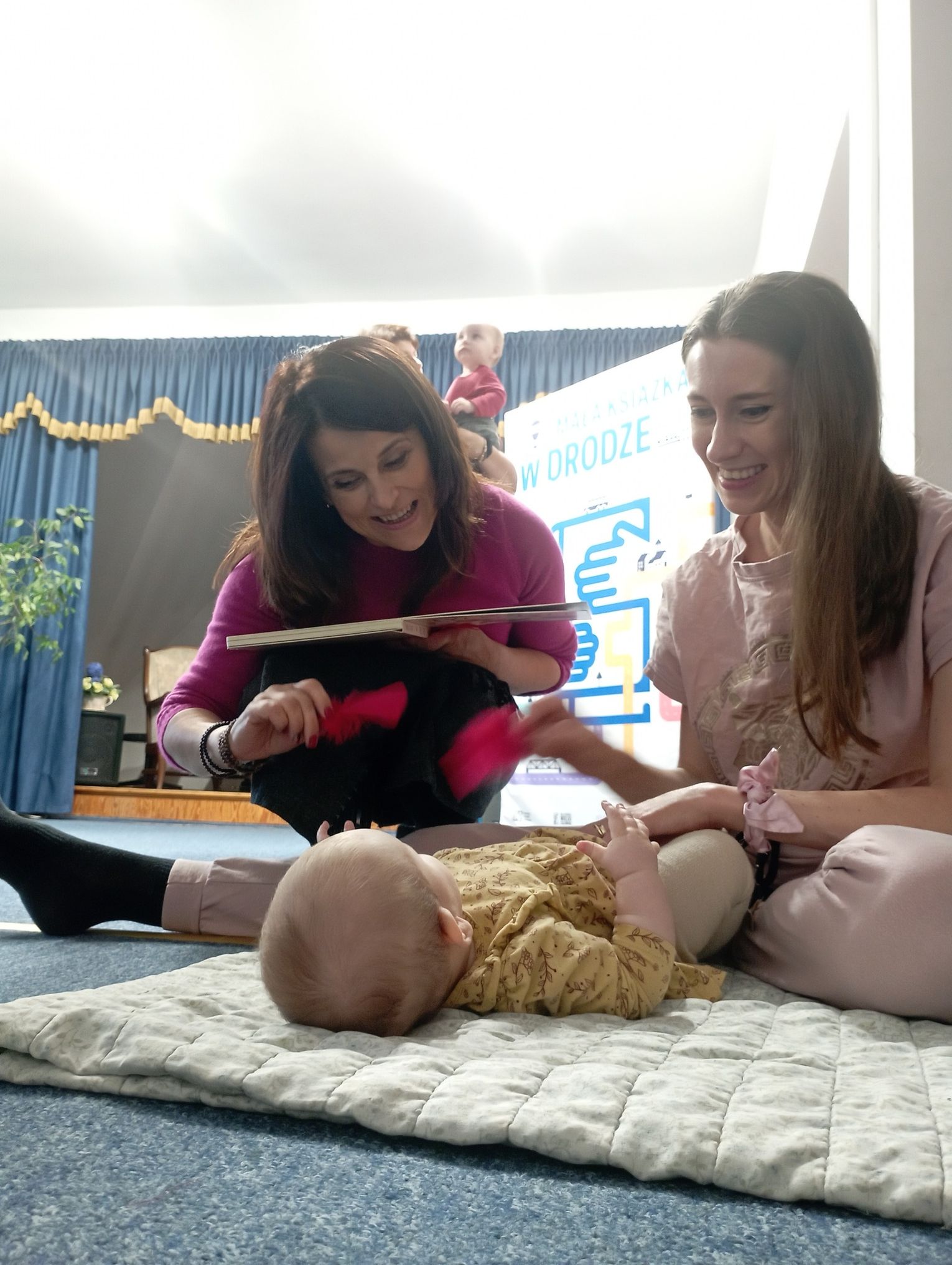 Podczas warsztatów rodzice dowiedzieli się, jak czytać dzieciom sensorowo, bliskościowo i czuło, wykorzystując nie tylko słowo, ale także dotyk, dźwięk, gesty i emocje. To podejście pomaga budować więź, rozwija wyobraźnię maluchów i uczy je wrażliwości od pierwszych miesięcy życia.