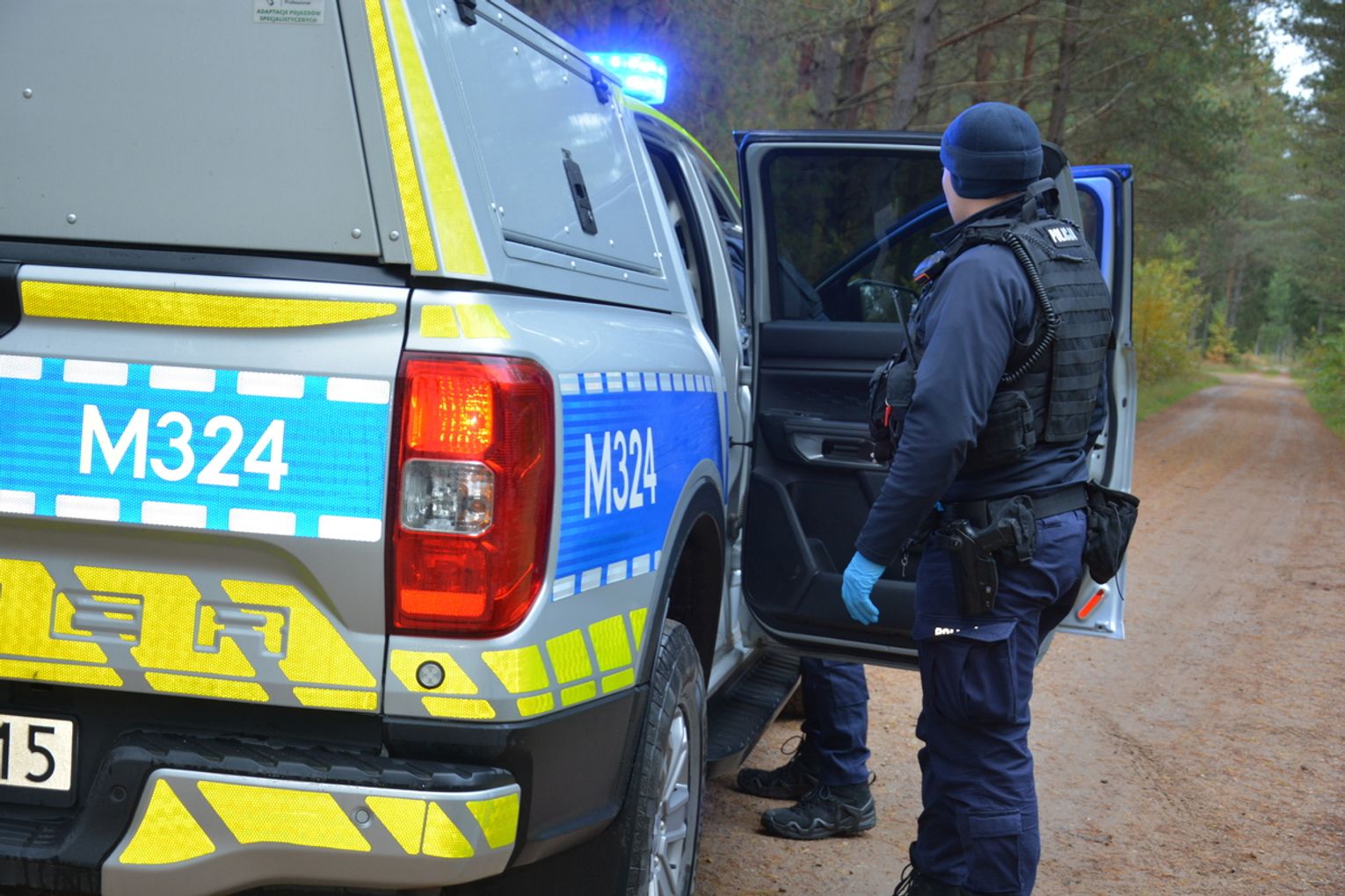 Z informacji wynikało, że sprawców jest dwóch. Gdy policjanci próbowali zatrzymać pojazd, uciekinierzy ominęli blokadę, po czym porzucili samochód i uciekli do lasu. Funkcjonariusze natychmiast rozpoczęli pościg pieszy i przeszukanie kompleksu leśnego.