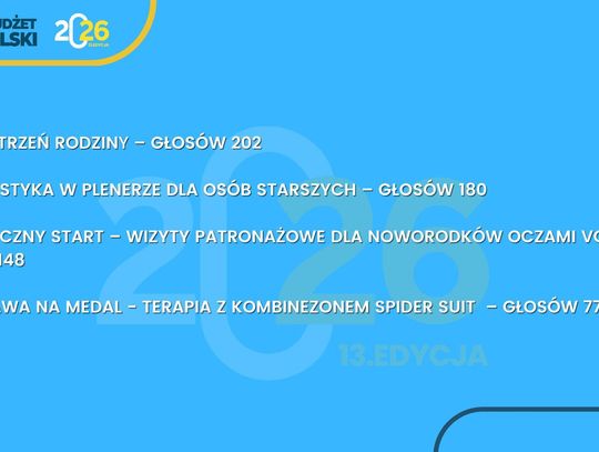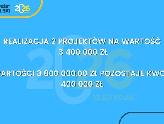 Zwycięskie projekty zostaną zrealizowane w 2026 roku. Miasto przystępuje teraz do opracowania dokumentacji technicznej oraz harmonogramów wykonania inwestycji.