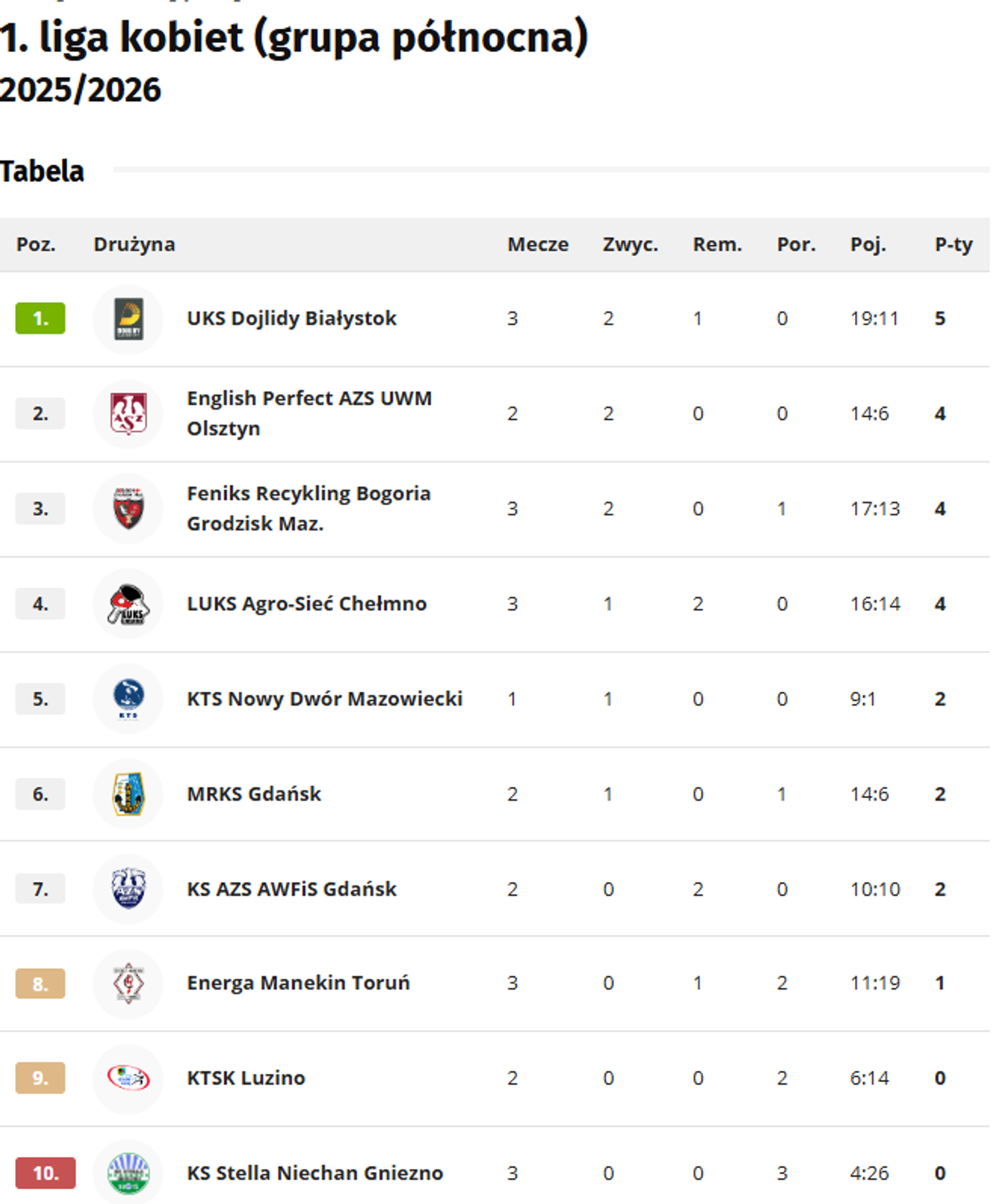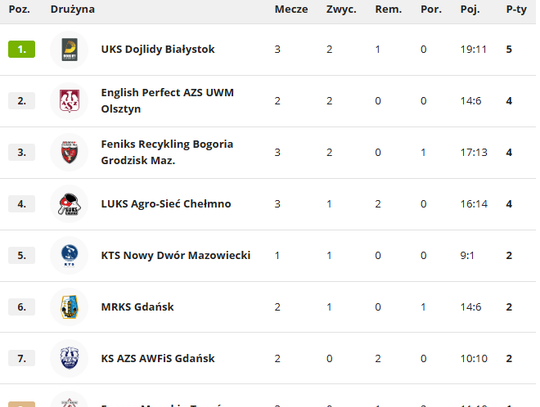 To drugie zwycięstwo w sezonie po wcześniejszym triumfie nad Energą Manekin Toruń i remisie z KS AZWFiS Gdańsk. Dzięki tym wynikom Dojlidy zostały liderkami tabeli I ligi kobiet.