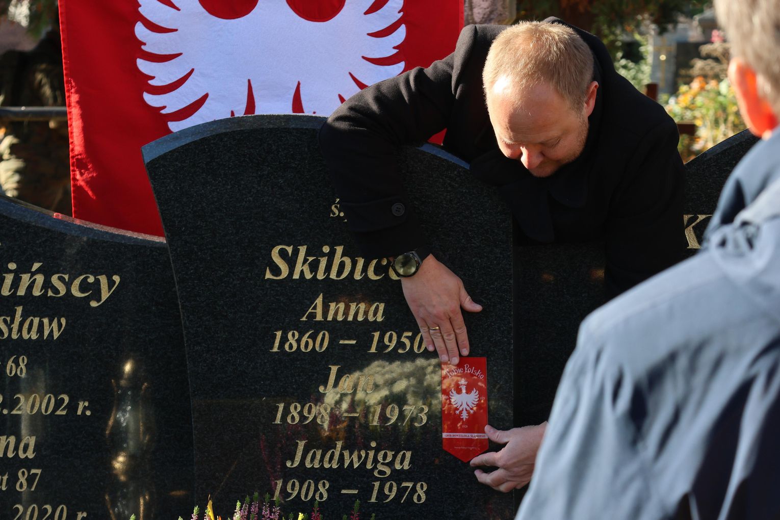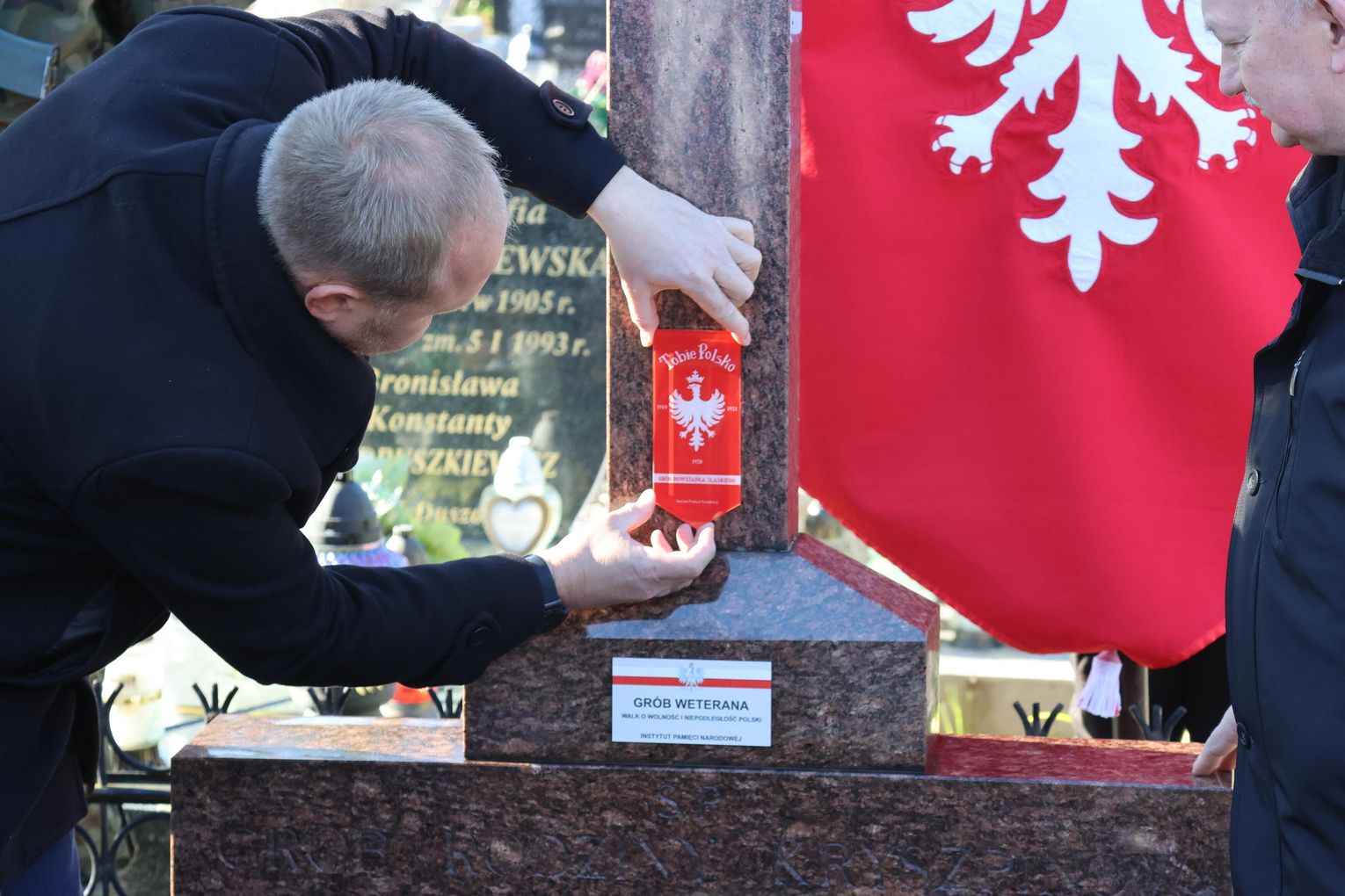 Na grobach bohaterów umieszczono szklane proporczyki z napisem „Tobie Polsko”, wizerunkiem orła oraz datami powstań 1919–1921. To symboliczny hołd dla tych, którzy walczyli o niepodległość kraju.