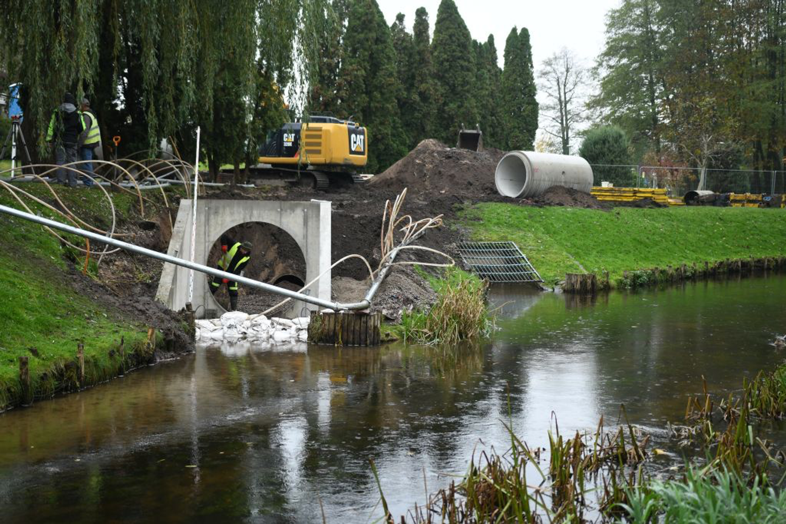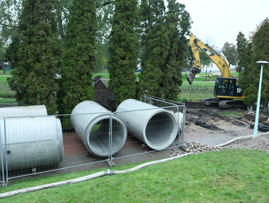 • 💧 Budowa zbiornika retencyjno-rozsączającego przy ul. Grunwaldzkiej (pod parkingiem przy cmentarzu), o pojemności 1 500 m³, wraz z przebudową kanalizacji deszczowej.
