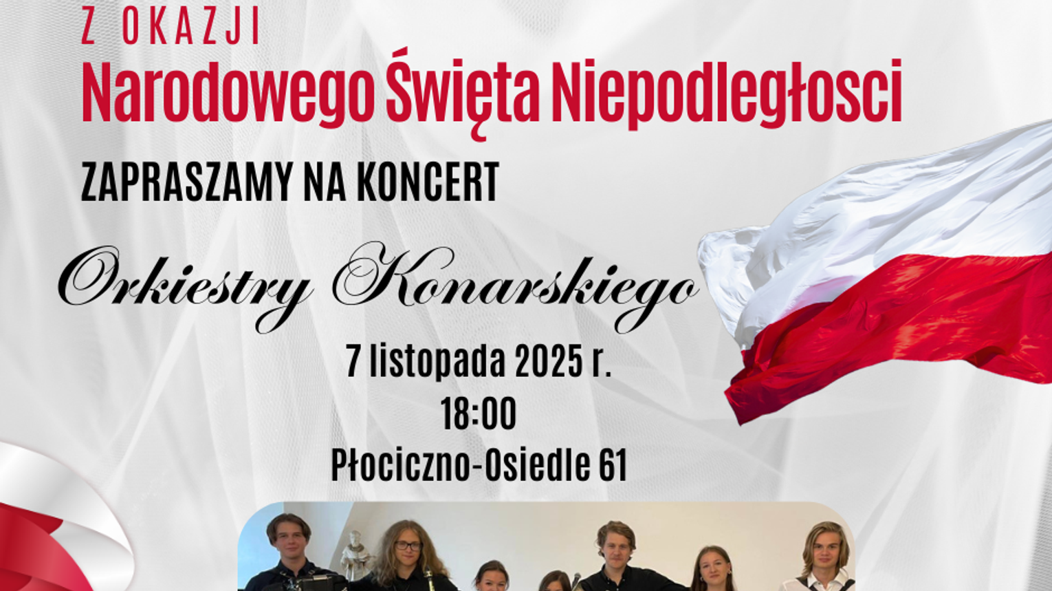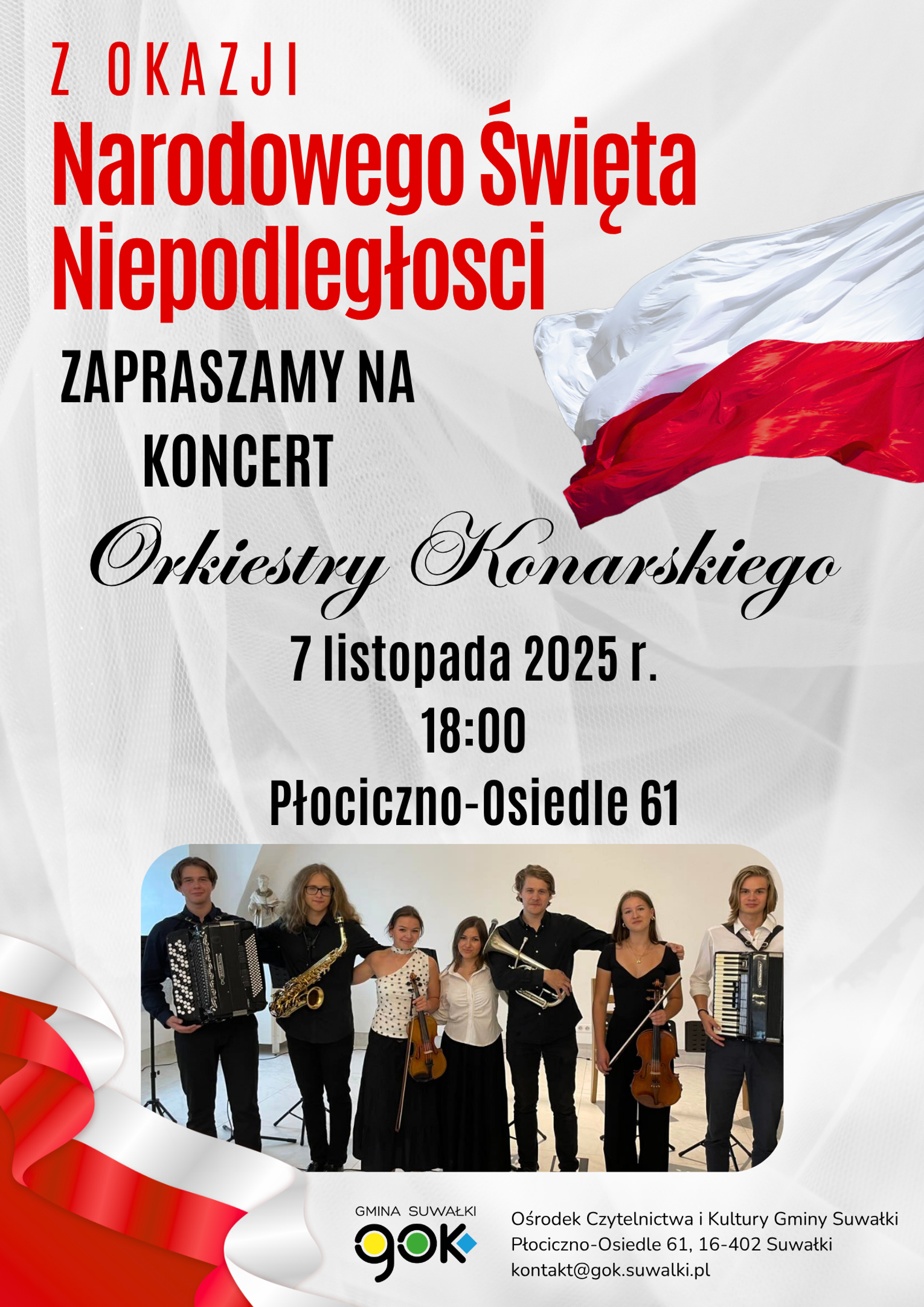 Przyjdźcie, by wspólnie celebrować to wyjątkowe święto przy dźwiękach muzyki w patriotycznym nastroju.