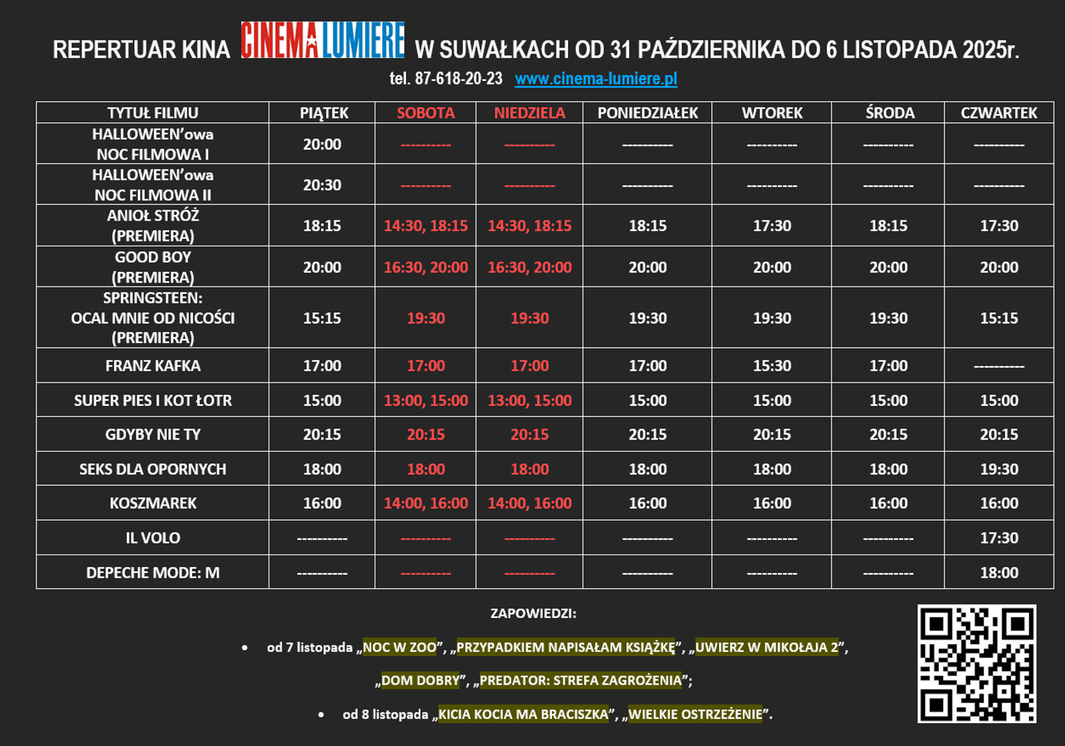 🎟️ Bilety dostępne w kasie kina oraz online na stronie Cinema Lumiere.