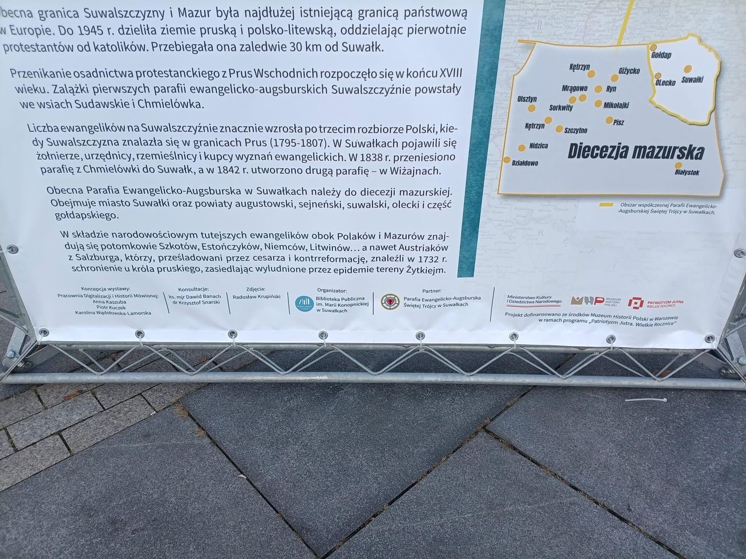 Wystawa wpisuje się w obchody 500. rocznicy Hołdu Pruskiego, a jej treść nawiązuje do korzeni ewangelicyzmu na Suwalszczyźnie, sięgających czasów Prus Książęcych. Na ośmiu planszach zaprezentowano bogatą historię, ciekawostki, dokumenty i fotografie związane z obecnością ewangelików w naszym regionie.