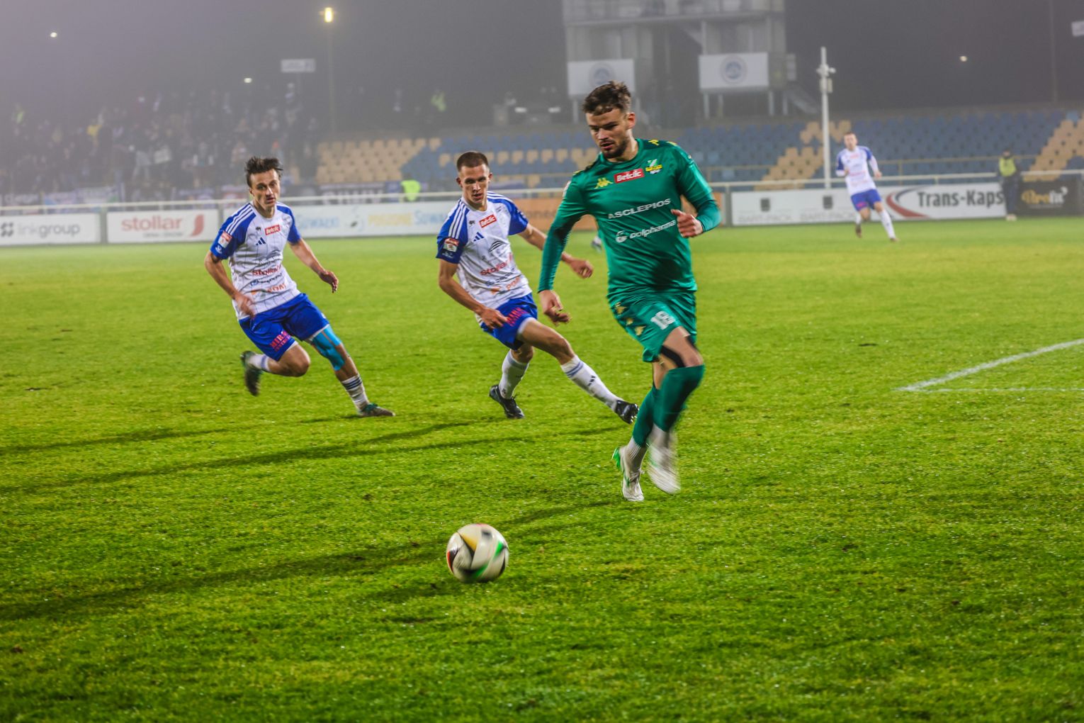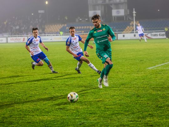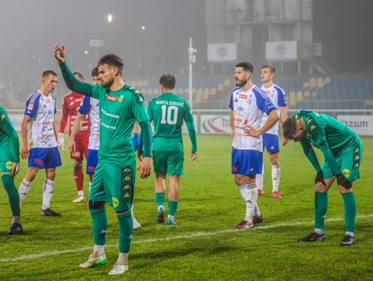 Po zmianie stron obraz gry uległ zmianie. Goście z Sieradza zaczęli odważniej atakować i w 58. minucie doprowadzili do wyrównania. Po faulu Pavlo Berezyanskyiego na Piotrze Mielczarku sędzia podyktował rzut karny, który pewnie wykorzystał Mateusz Lis.