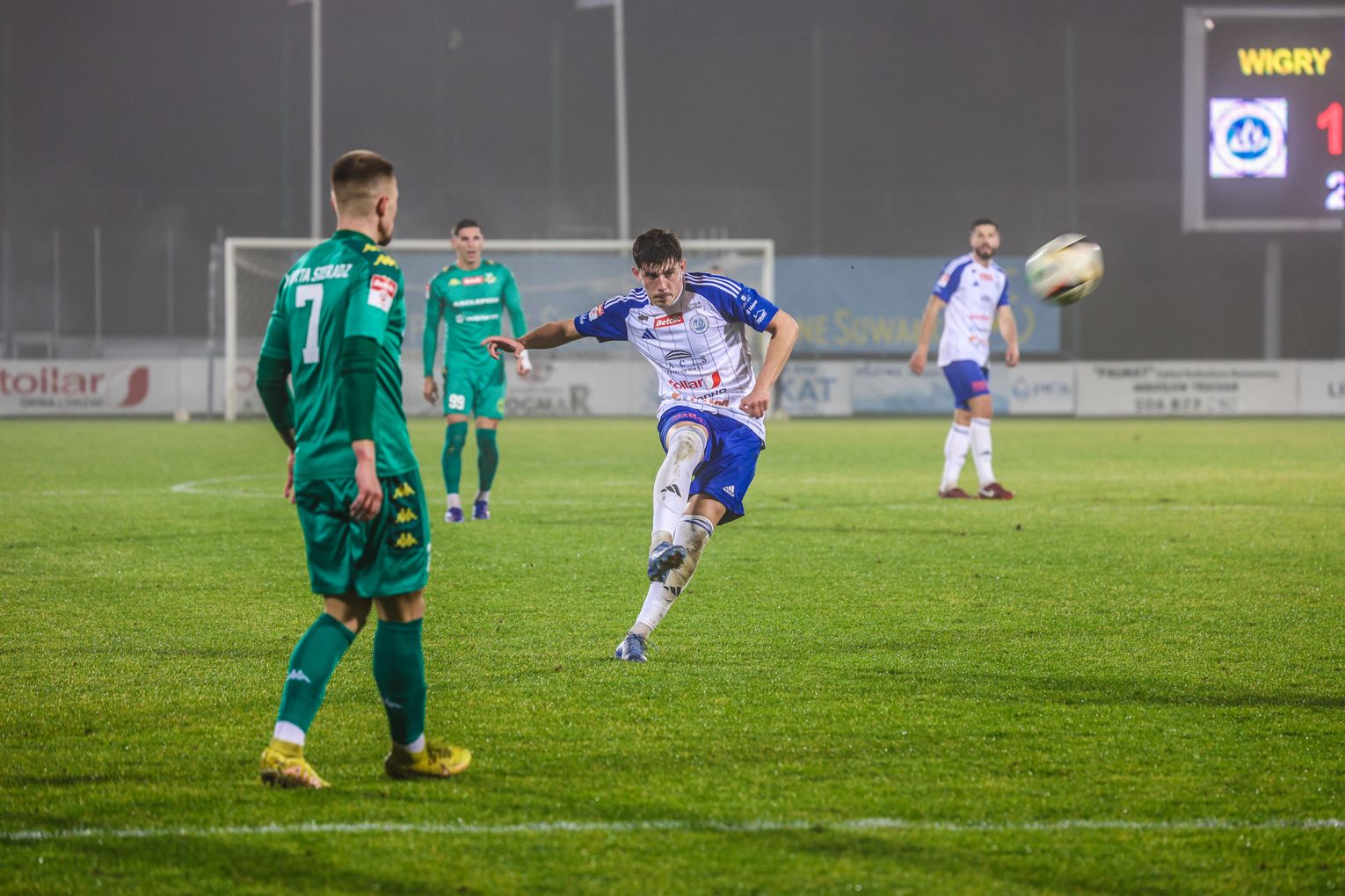 Wigry próbowały odpowiedzieć, ale w 77. minucie to Warta zadała decydujący cios. Po szybkim kontrataku piłka trafiła do Bartłomieja Kręcichwosta, który precyzyjnym uderzeniem pokonał Mateusza Taudula i wyprowadził swój zespół na prowadzenie 2:1.