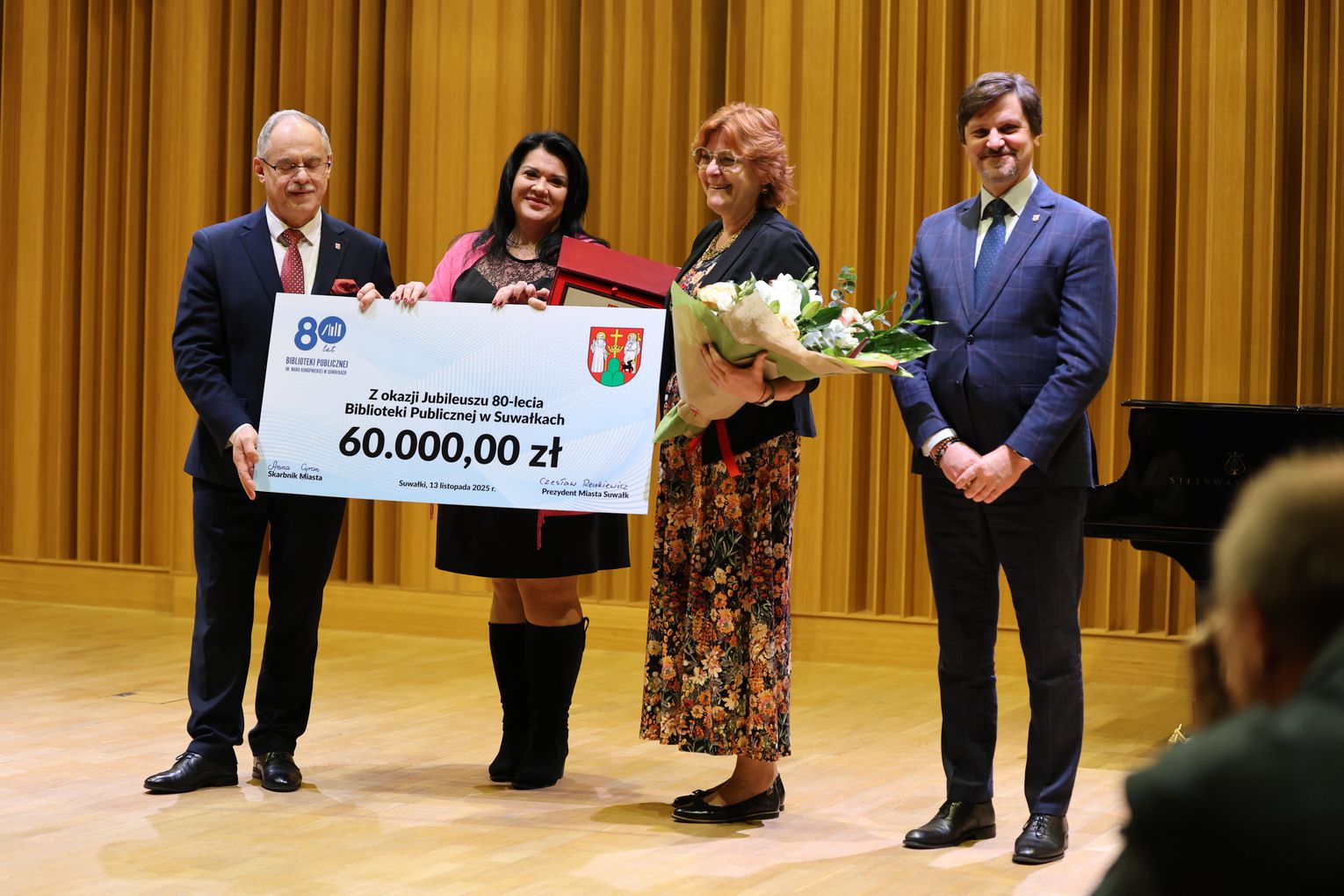 „Chcemy bardzo serdecznie podziękować Dyrekcji i całemu zespołowi za te lata świetnej pracy i poświęcenia. W imieniu władz samorządowych dziękujemy za Państwa otwartość i liczne, cenne inicjatywy. Fakty pokazują, że Państwa instytucja realizuje swoją misję od serca, wychodząc poza formalne zapisy i schematy. Dzięki temu suwalska Biblioteka dynamicznie się rozwija, oferując mieszkańcom – w tym szczególnie dzieciom – bogactwo wartościowych projektów. Wasza praca stanowi realną wartość dla naszej społeczności.”
