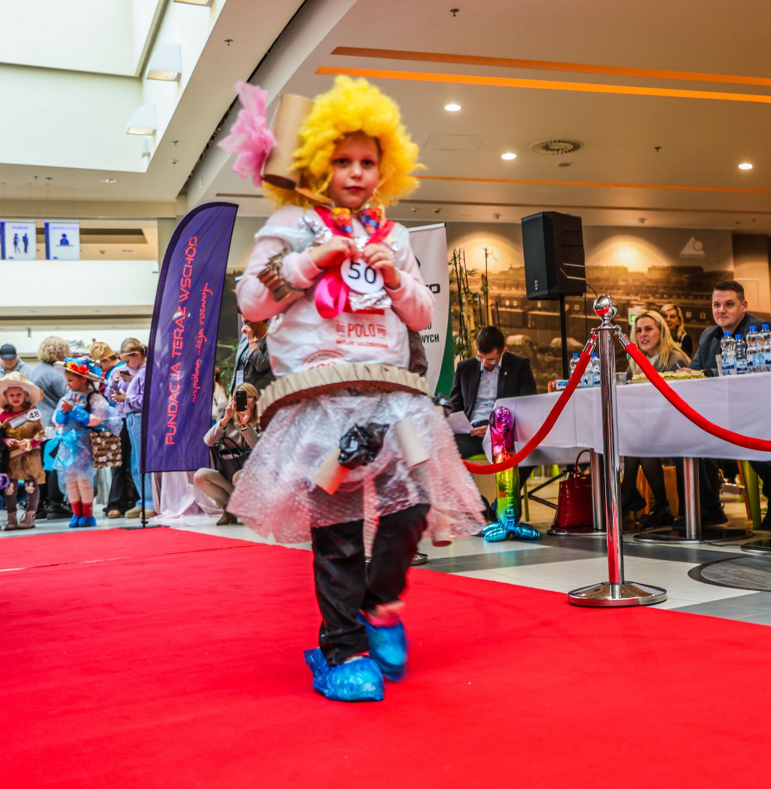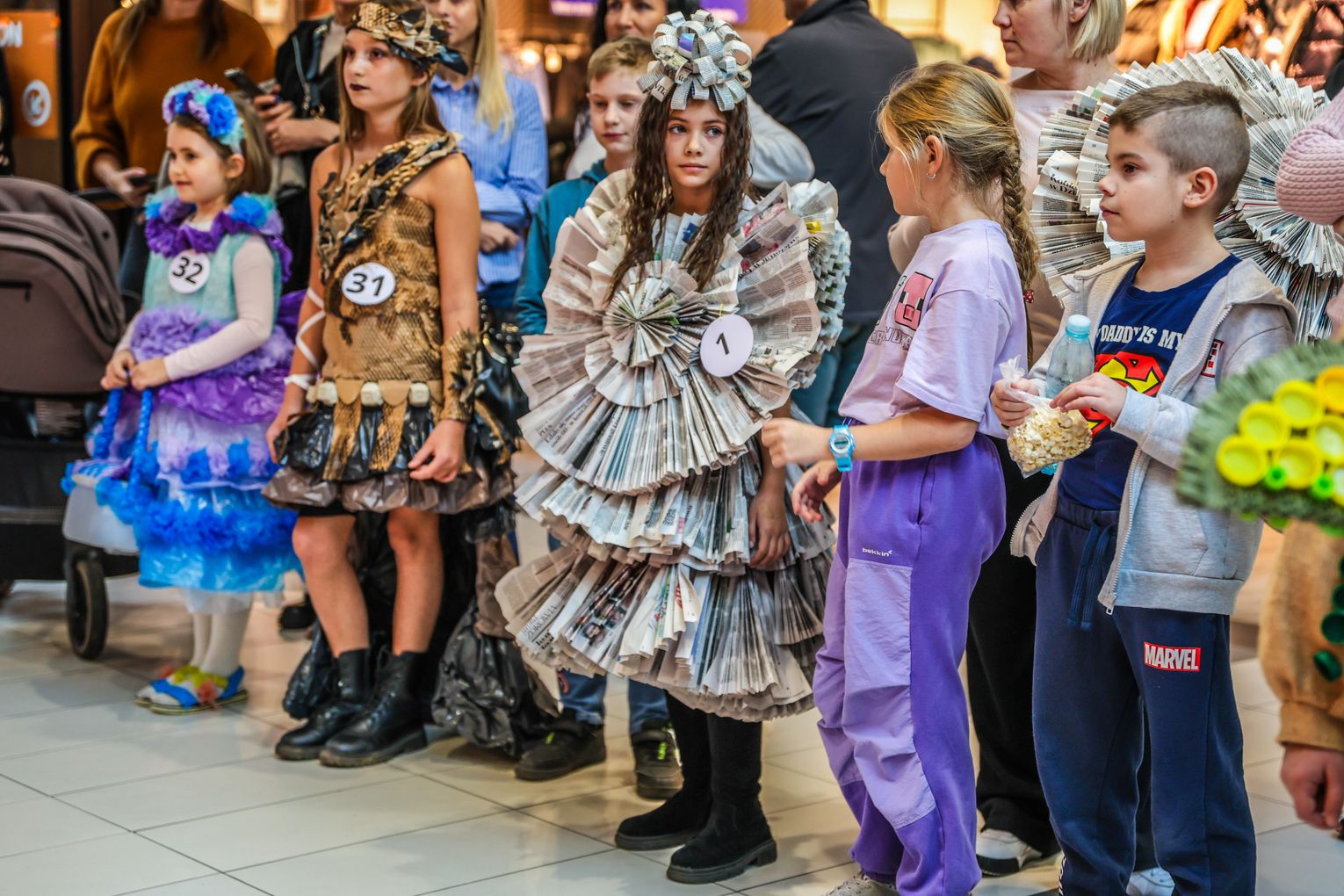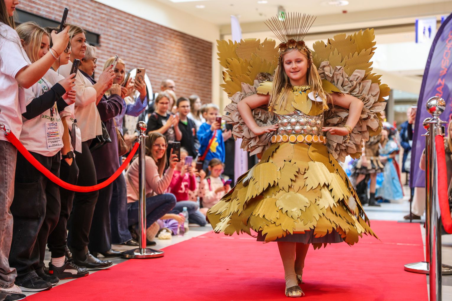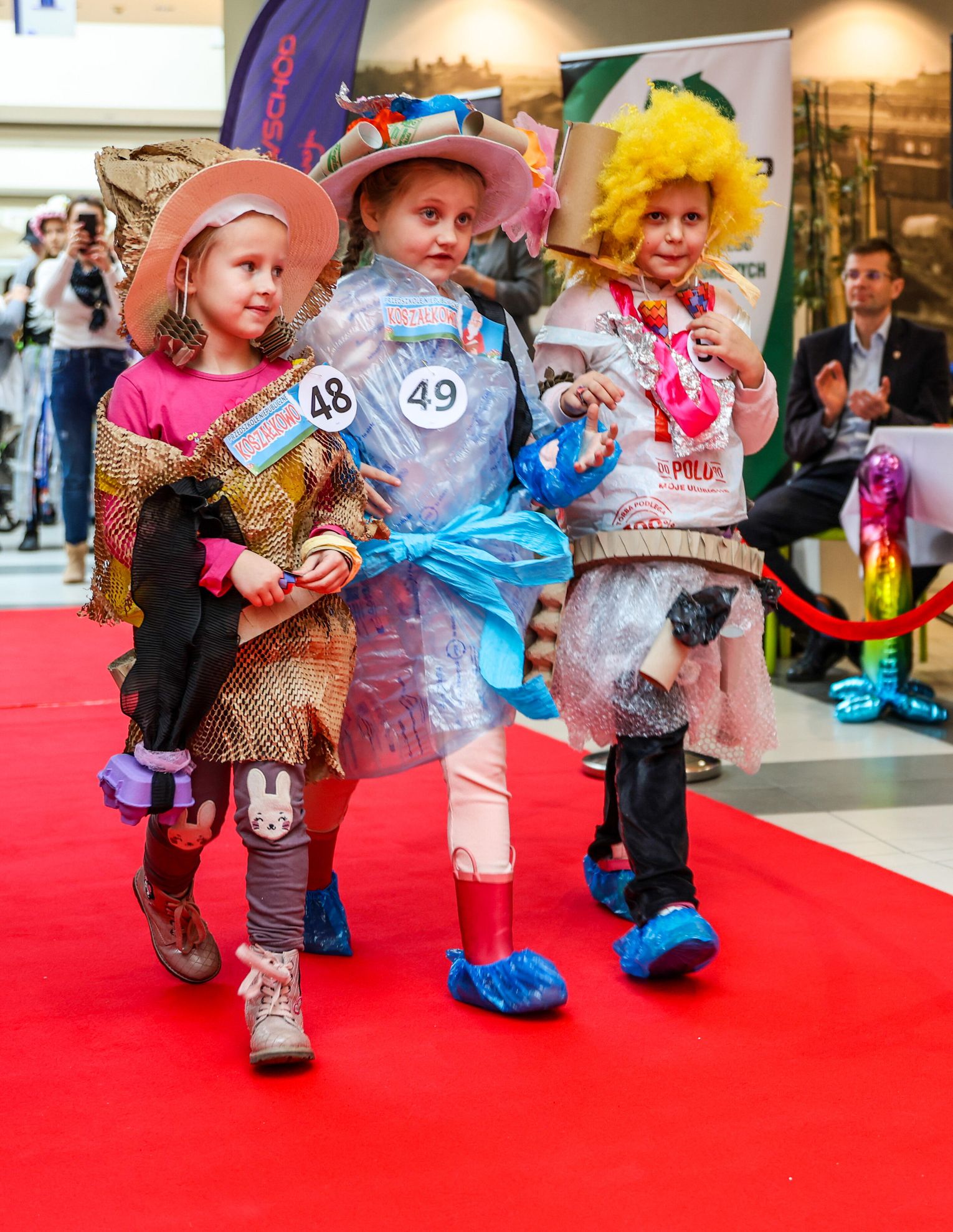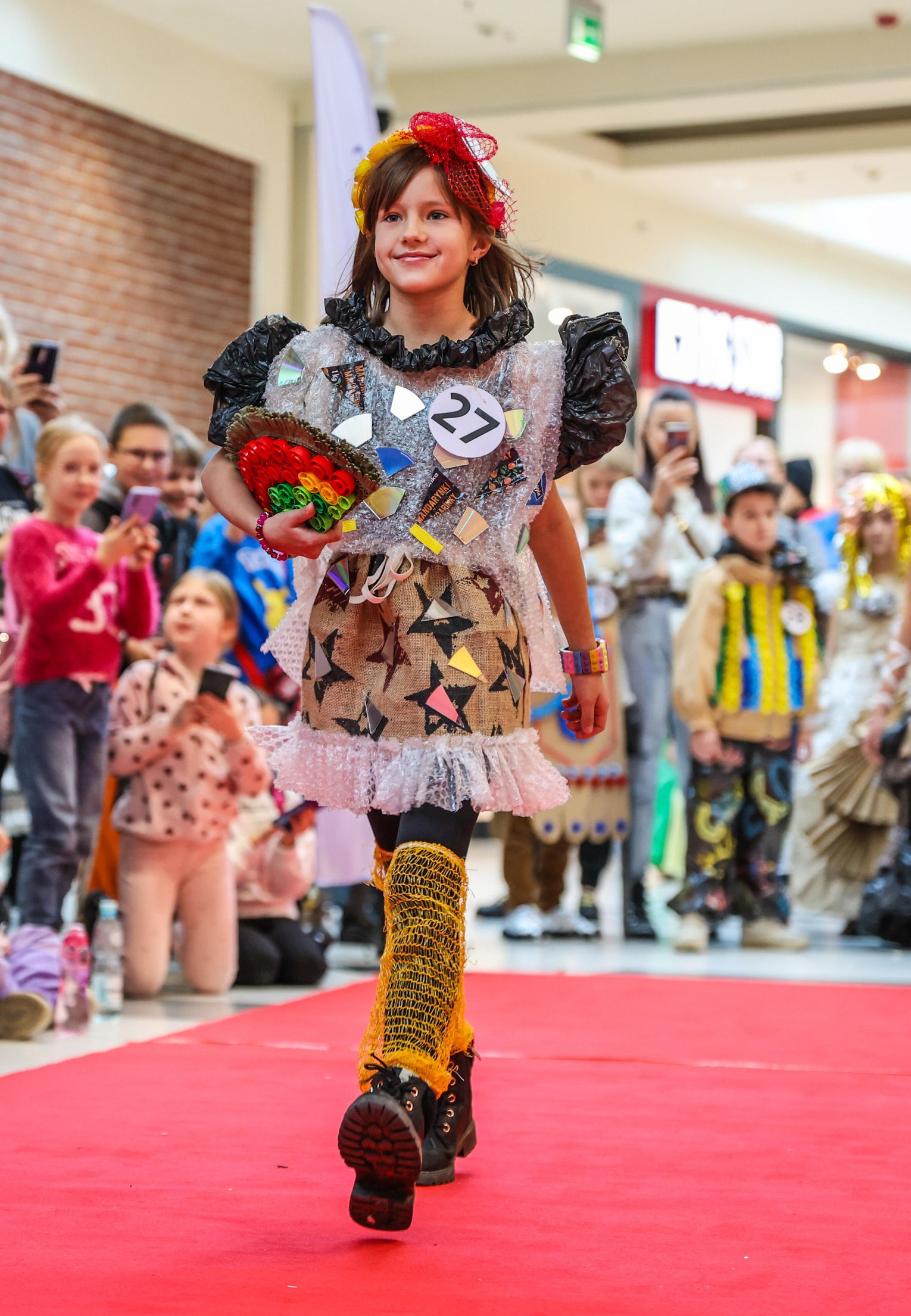 Jednym z najważniejszych punktów programu był pokaz recyklingowej ekomody 🎨👧, podczas którego dzieci zaprezentowały kreatywne stroje wykonane z materiałów pochodzących z odzysku. Kolorowe, pomysłowe kreacje wzbudziły ogromne zainteresowanie publiczności 👏 oraz udowodniły, że ekologia może być twórcza i inspirująca.