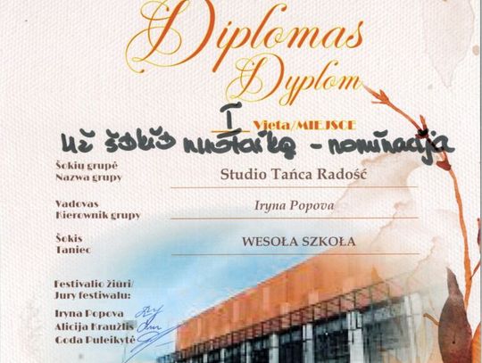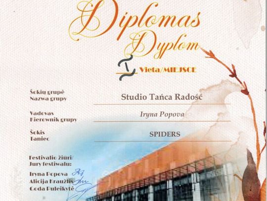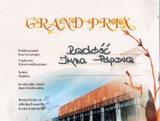 Ogromnym sukcesem zakończył się udział Studia Tańca Radość, prowadzonego przez Irynę Popovą. Zespół wywalczył: