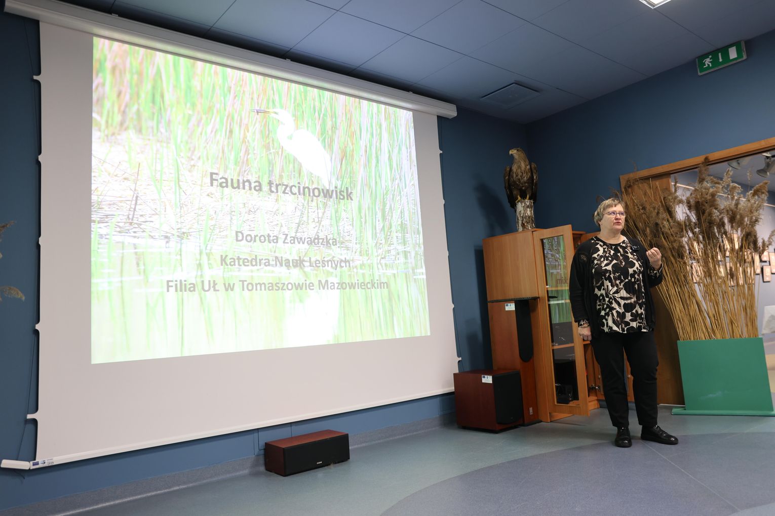 Dr hab. Dorota Zawadzka omówiła faunę trzcinowisk, zwracając uwagę na rolę tych siedlisk w zachowaniu różnorodności biologicznej.