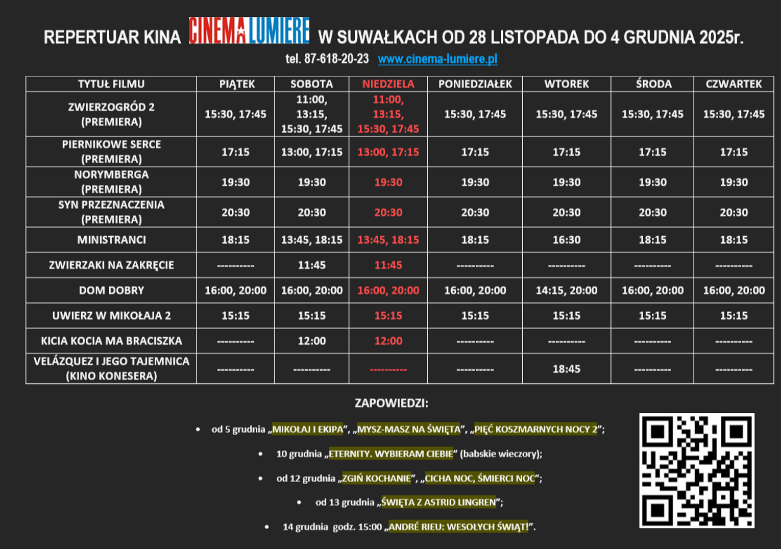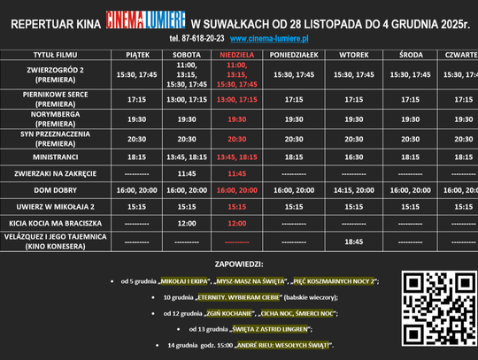 Pełny repertuar dostępny jest na zdjęciu poniżej oraz na stronie kina.