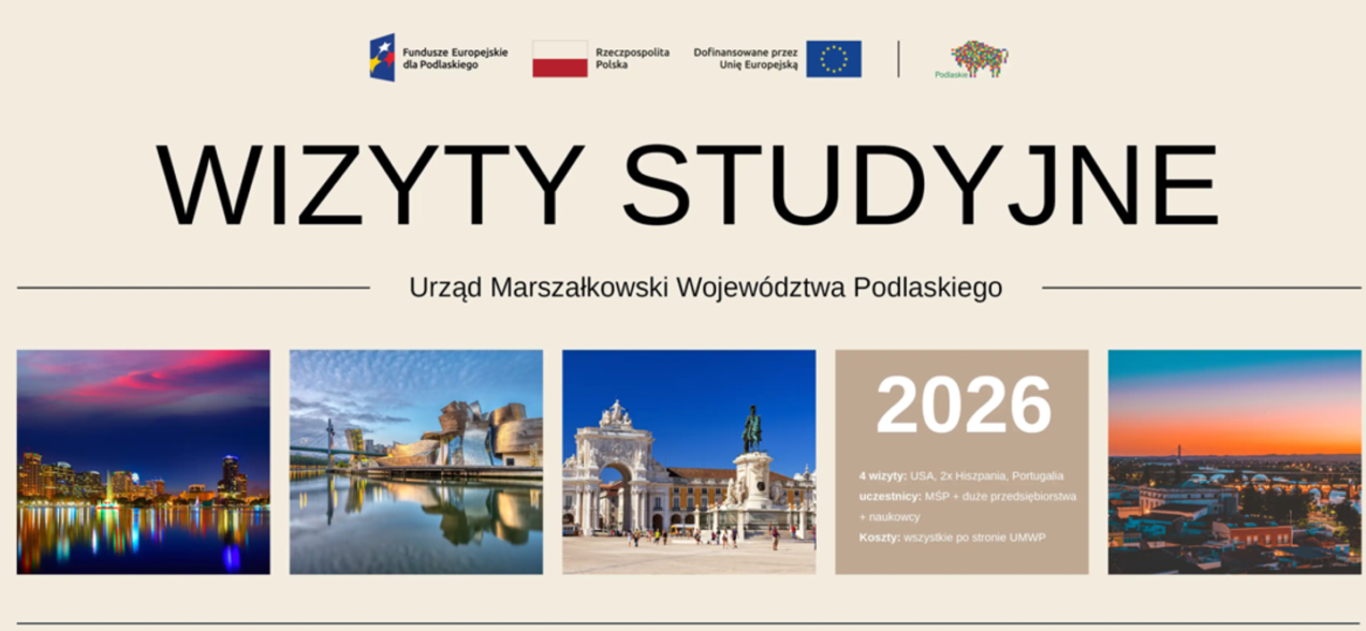 Wizyty studyjne realizowane są w ramach programu „Regionalny projekt w zakresie budowy potencjału regionu PPO” finansowanego z Funduszy Europejskich dla Podlaskiego 2021–2027.