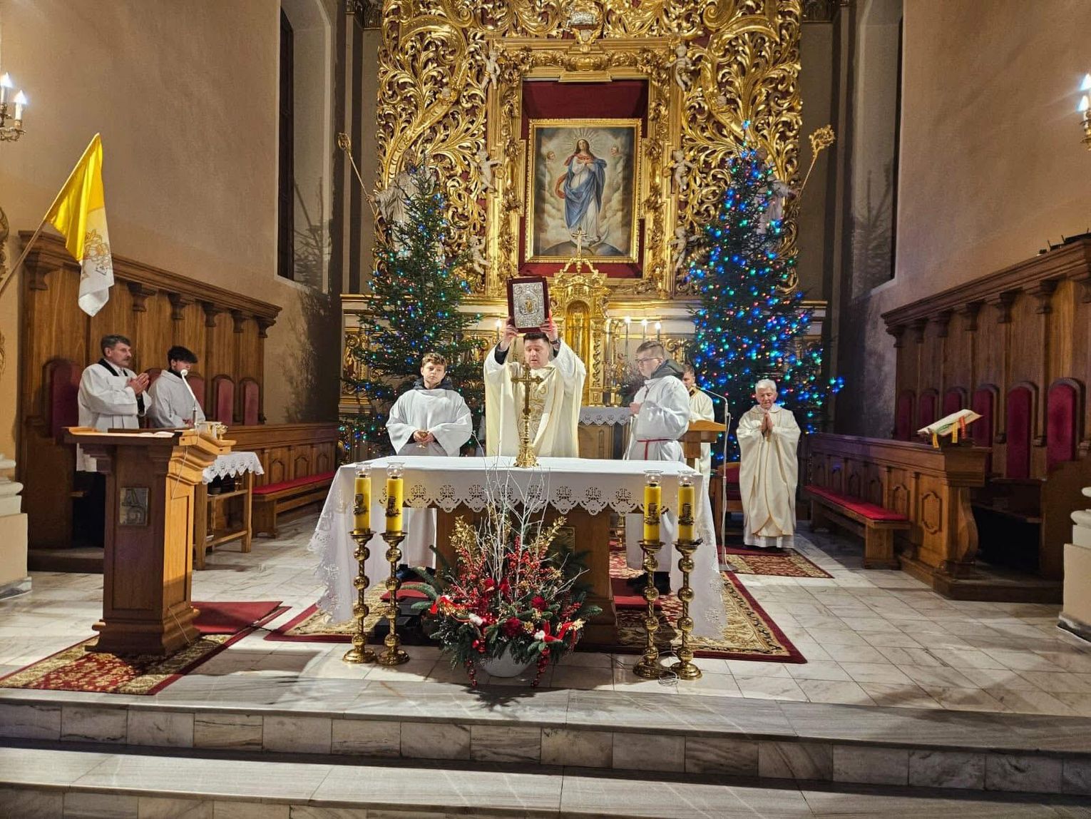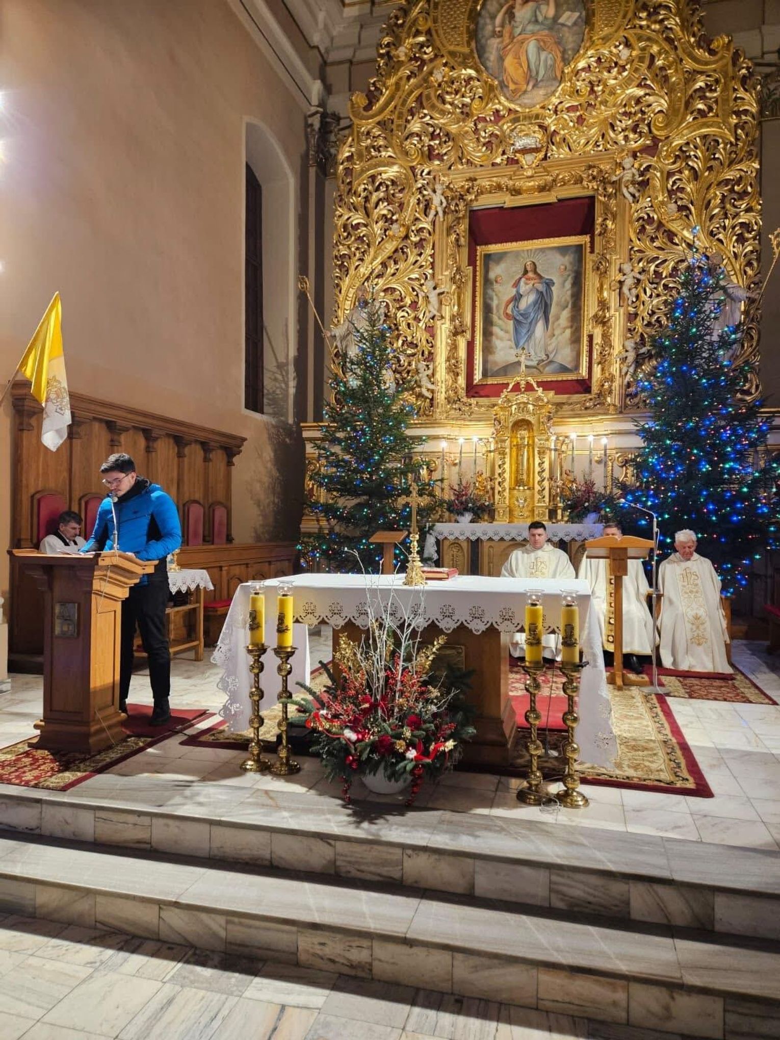 Pierwsza Msza Święta wigilijna została odprawiona o godz. 22.00. Przewodniczył jej ks. Daniel, wprowadzając zgromadzonych w tajemnicę Narodzenia Pańskiego i pomagając wiernym duchowo przygotować się na nadchodzące święta.