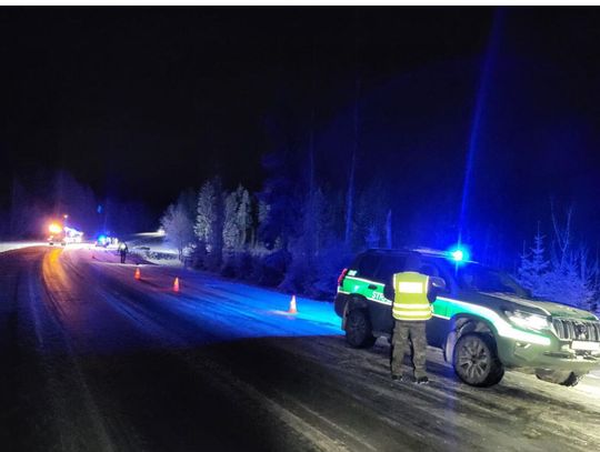 Na miejsce skierowano również oznakowany patrol Straży Granicznej, który dodatkowo zabezpieczał teren zdarzenia ze względu na ograniczoną widoczność oraz intensywne opady śniegu.