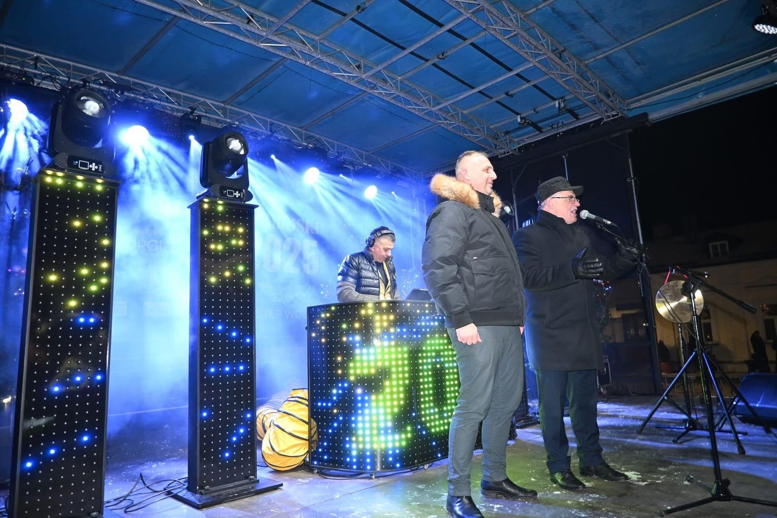Symbolicznym momentem wydarzenia było wspólne uderzenie w gong przez prezydenta Suwałk Czesława Renkiewicza oraz radnego miejskiego Kamila Lauryna. W ten sposób, razem z licznie zgromadzonymi suwalczanami, oficjalnie przywitali Nowy Rok 2026.