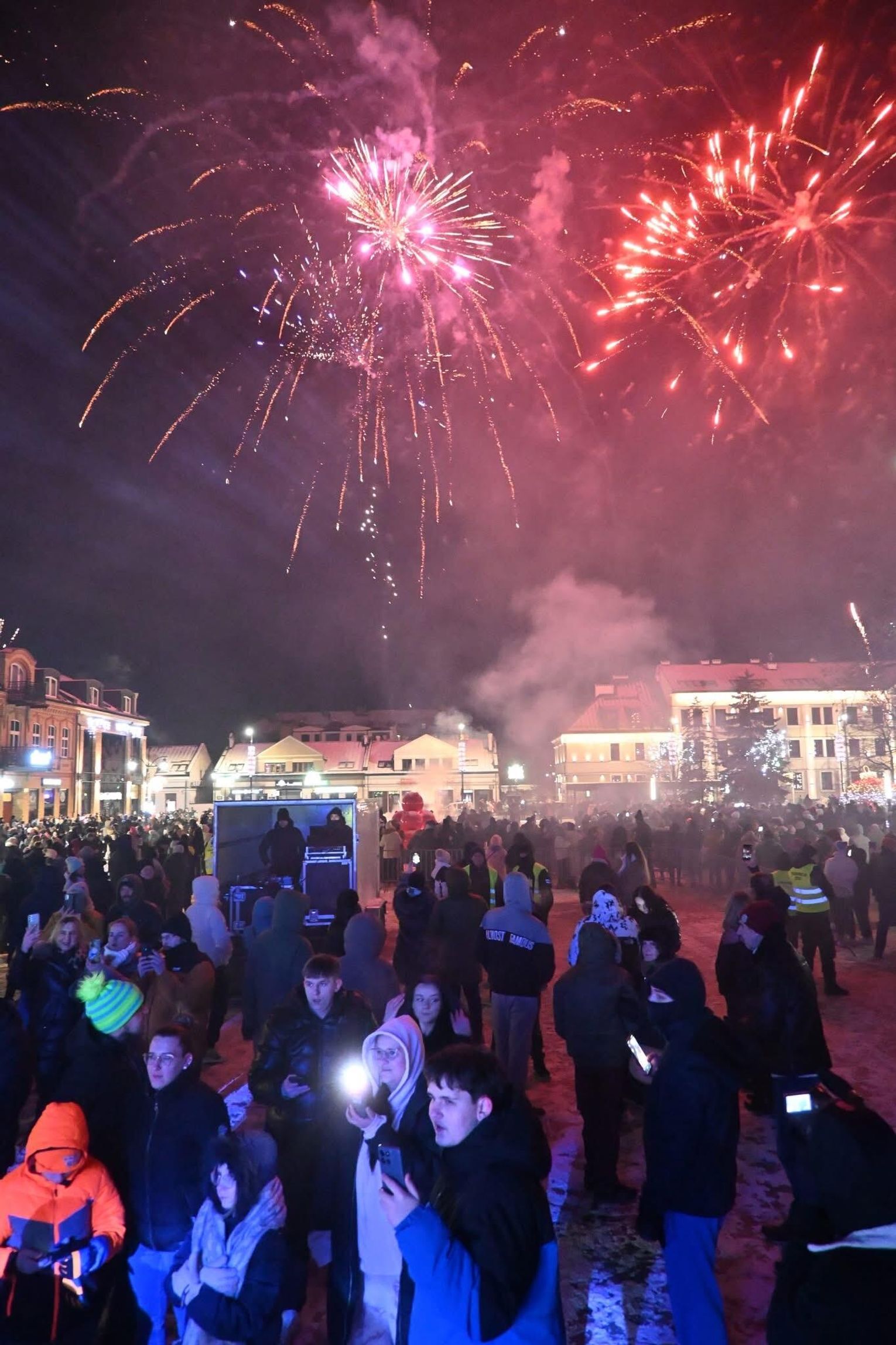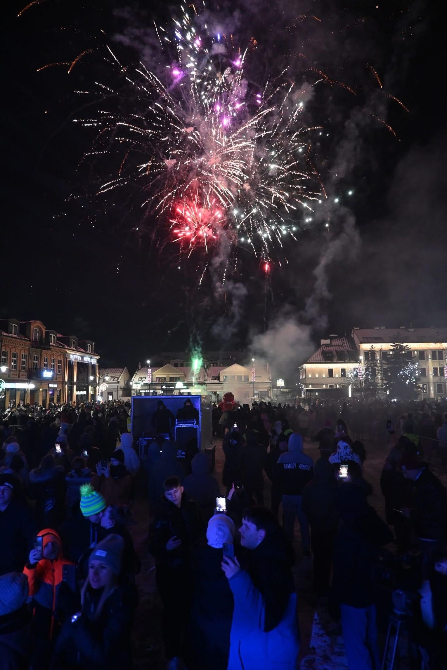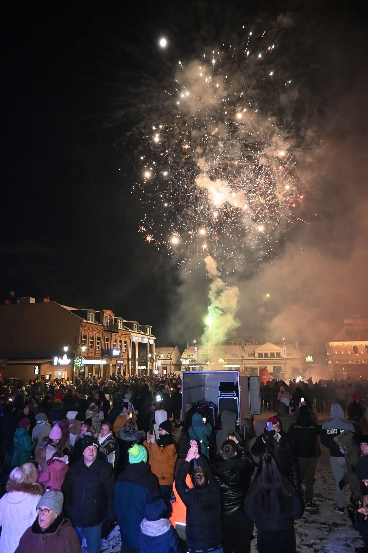 Choć miasto nie organizowało oficjalnego pokazu pirotechnicznego, o wizualne atrakcje zadbali sami uczestnicy wydarzenia, którzy spontanicznie przygotowali pokaz fajerwerków, tworząc barwną oprawę noworocznych celebracji.