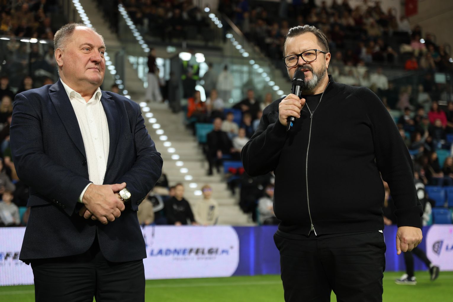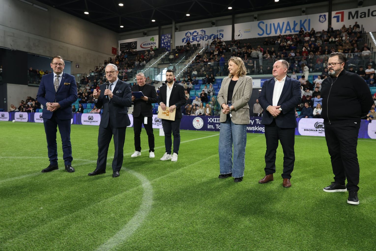 Trybuny wypełnili mieszkańcy Suwałk, którzy licznie przyszli kibicować i okazać swoje wsparcie. Wśród gości znaleźli się także przedstawiciele lokalnych władz i środowisk społecznych, m.in. poseł Jacek Niedźwiedzki oraz znani suwalczanie zaangażowani w życie miasta.
