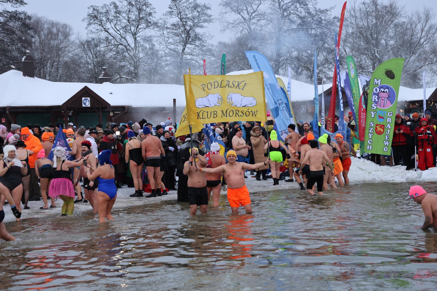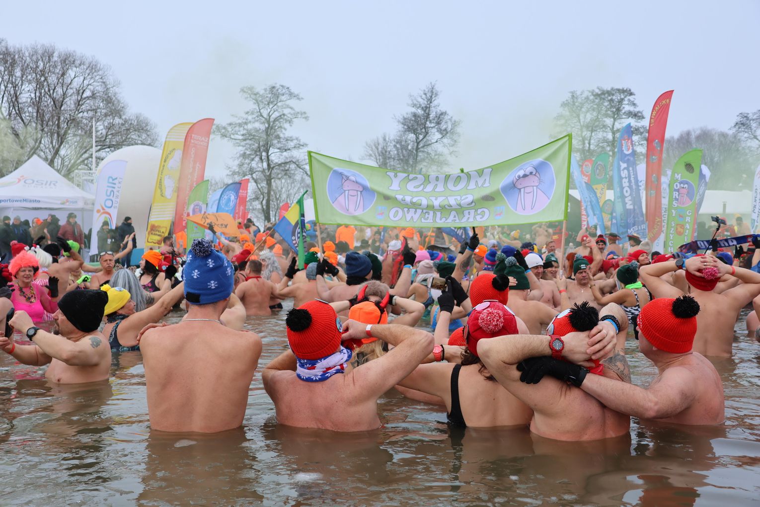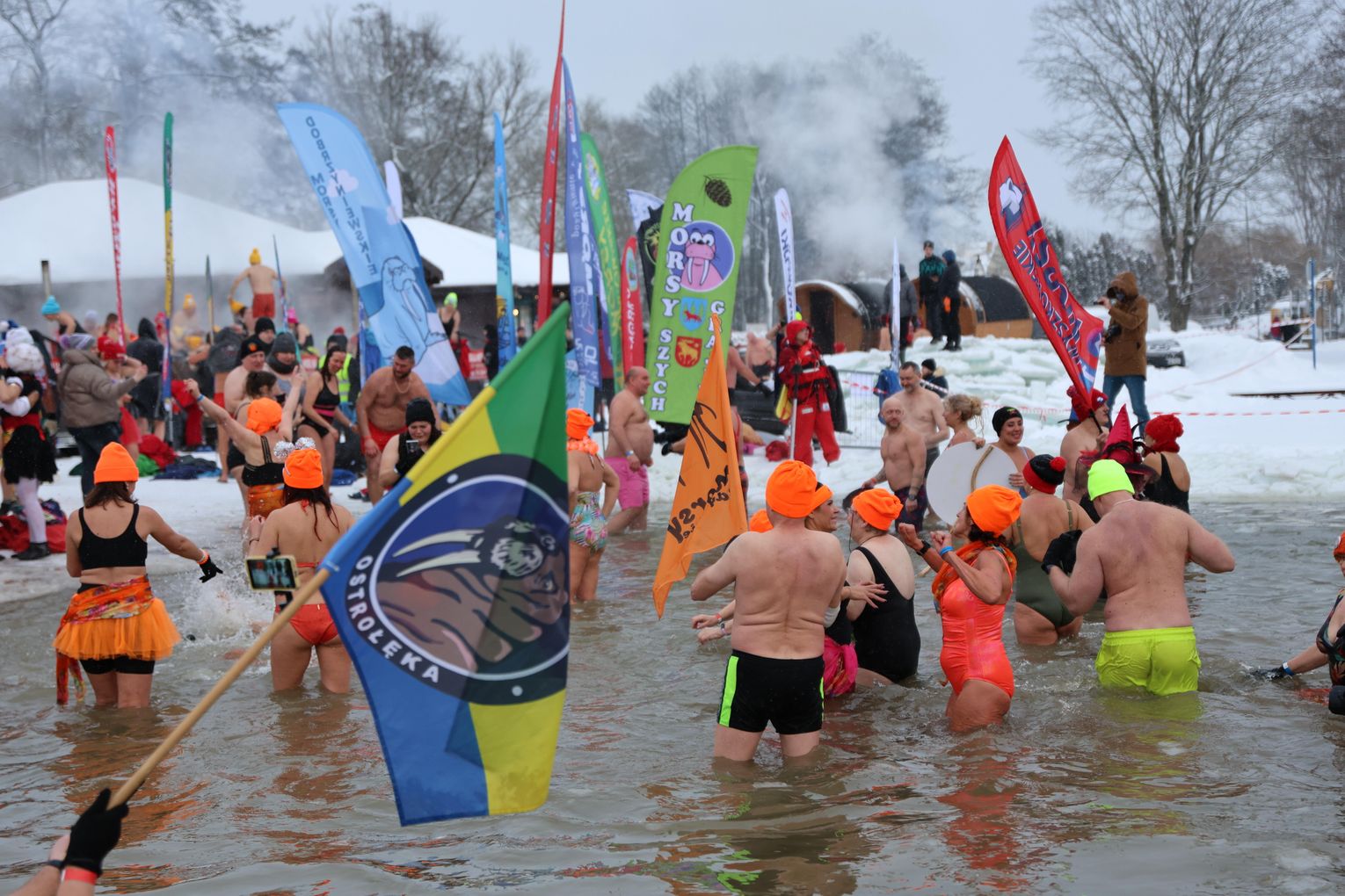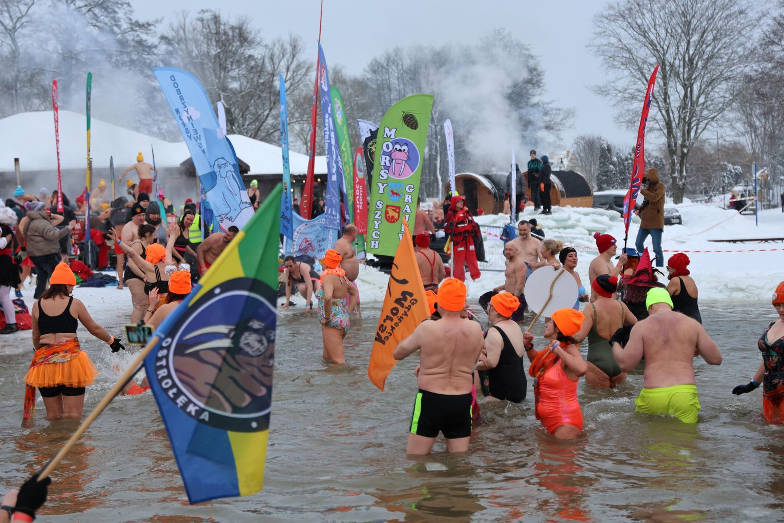 Najważniejszym punktem programu była oczywiście wspólna kąpiel morsów. To moment, na który czekali zarówno debiutanci, jak i doświadczeni uczestnicy, dla których lodowata woda to pasja i styl życia.