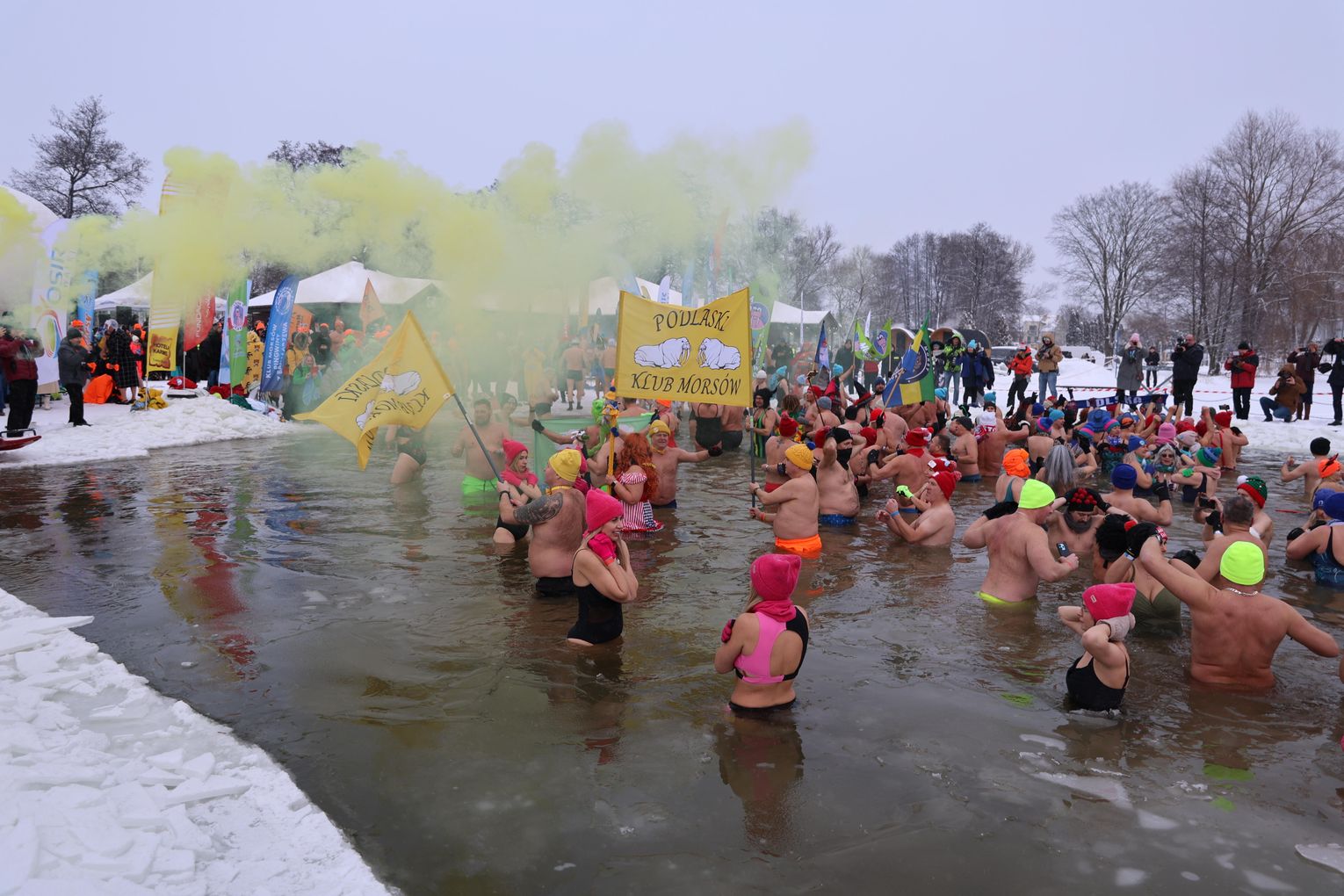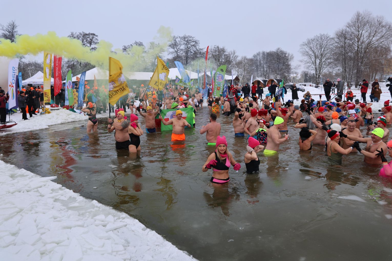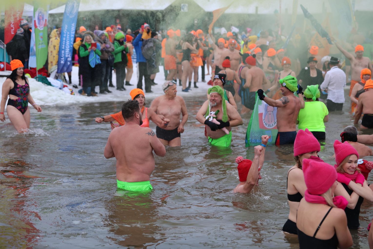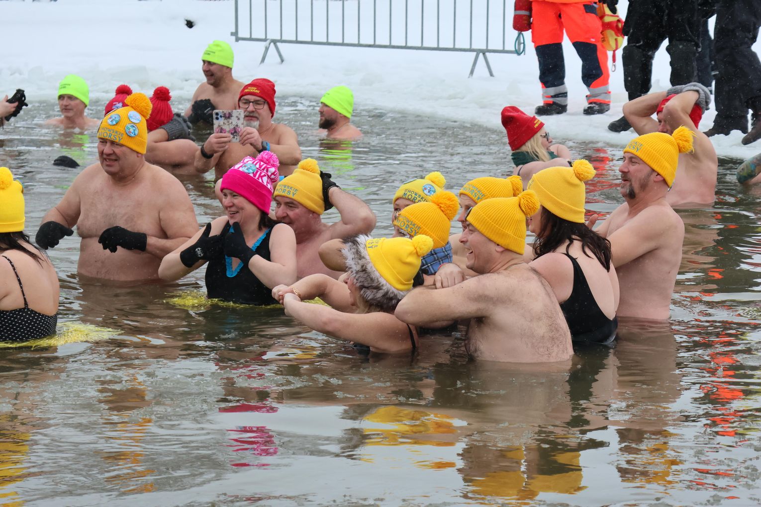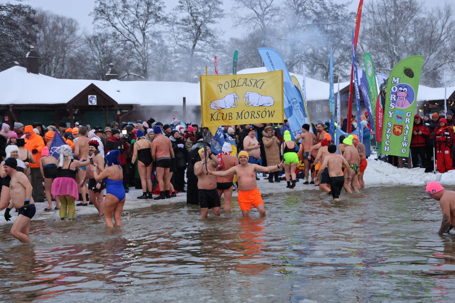 Najważniejszym punktem programu była oczywiście wspólna kąpiel morsów. To moment, na który czekali zarówno debiutanci, jak i doświadczeni uczestnicy, dla których lodowata woda to pasja i styl życia.