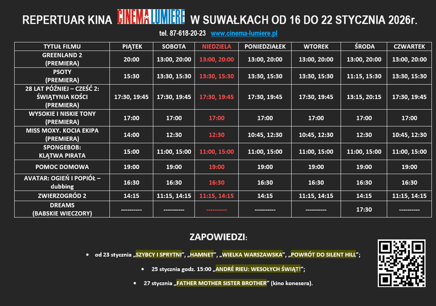 Pełny repertuar dostępny jest: