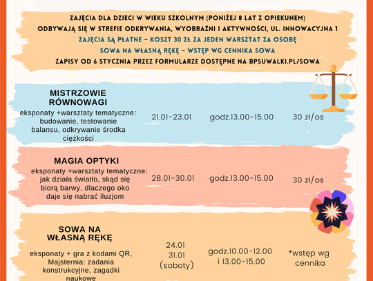 Warsztaty to doskonała okazja, by spędzić ferie w aktywny sposób, zdobyć nową wiedzę, pośmiać się i przeżyć naukową przygodę w zimowej odsłonie.