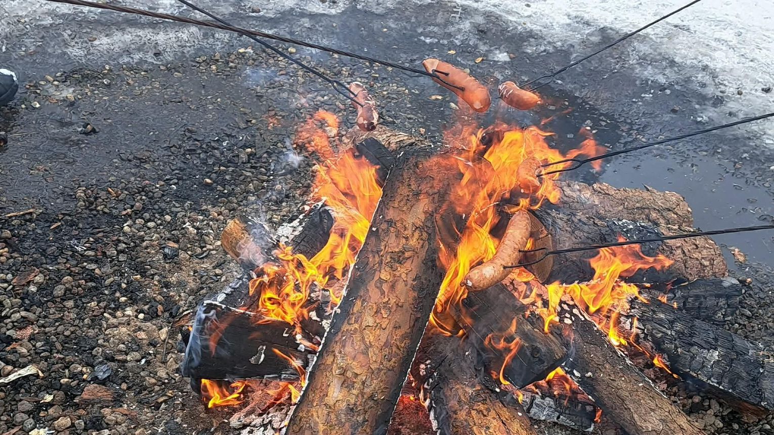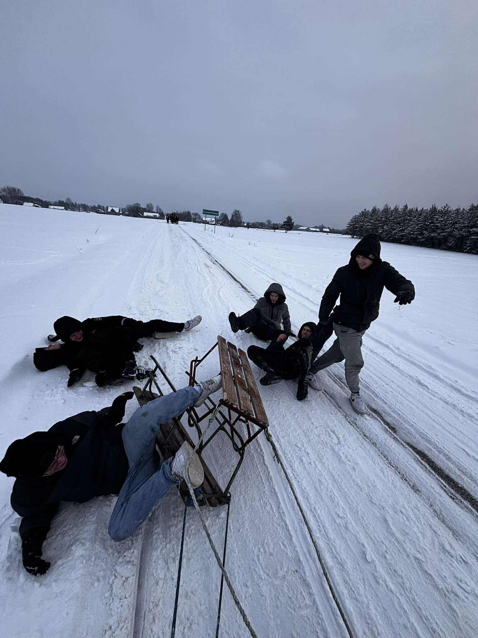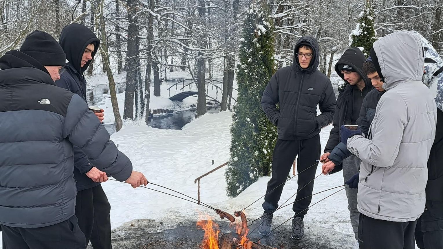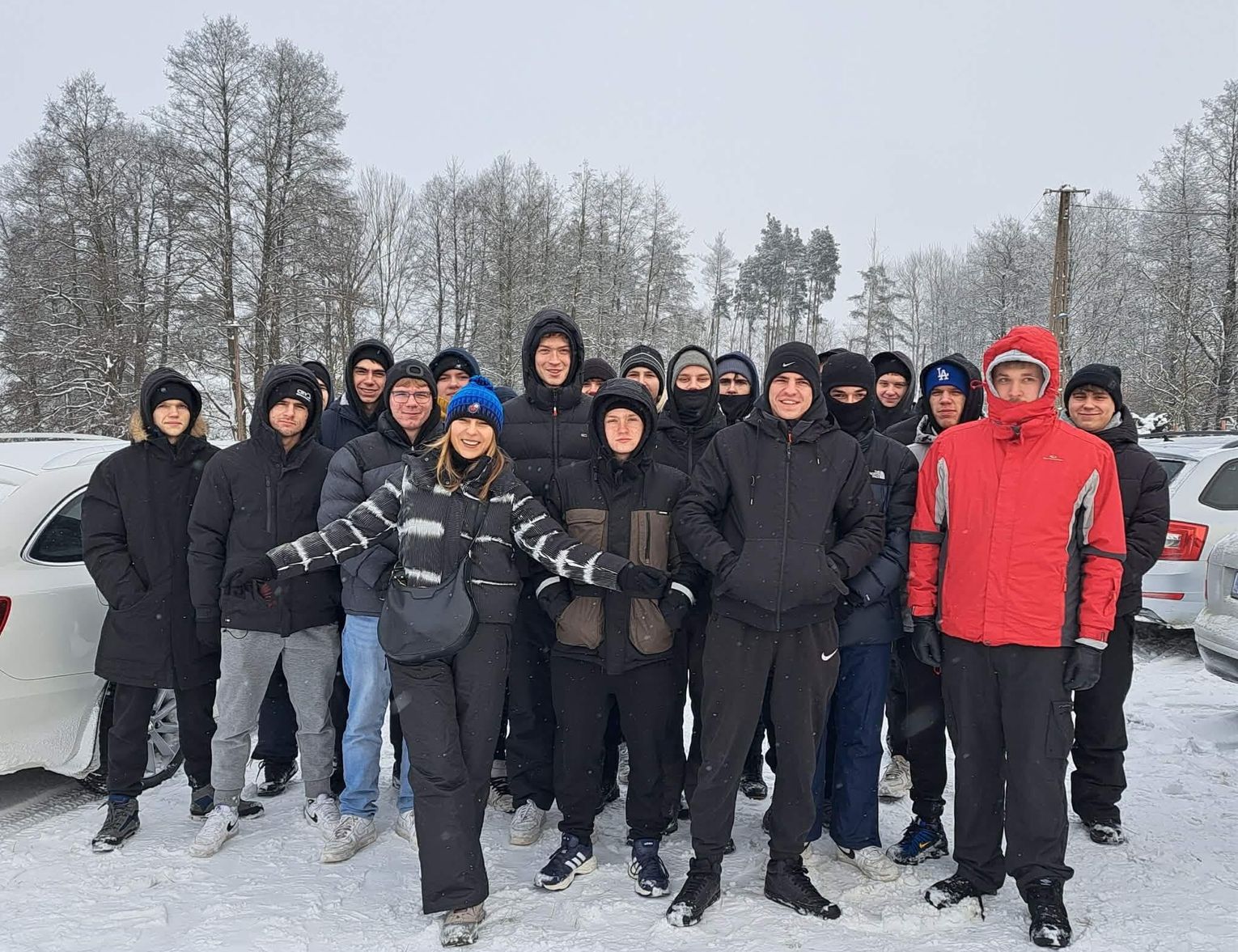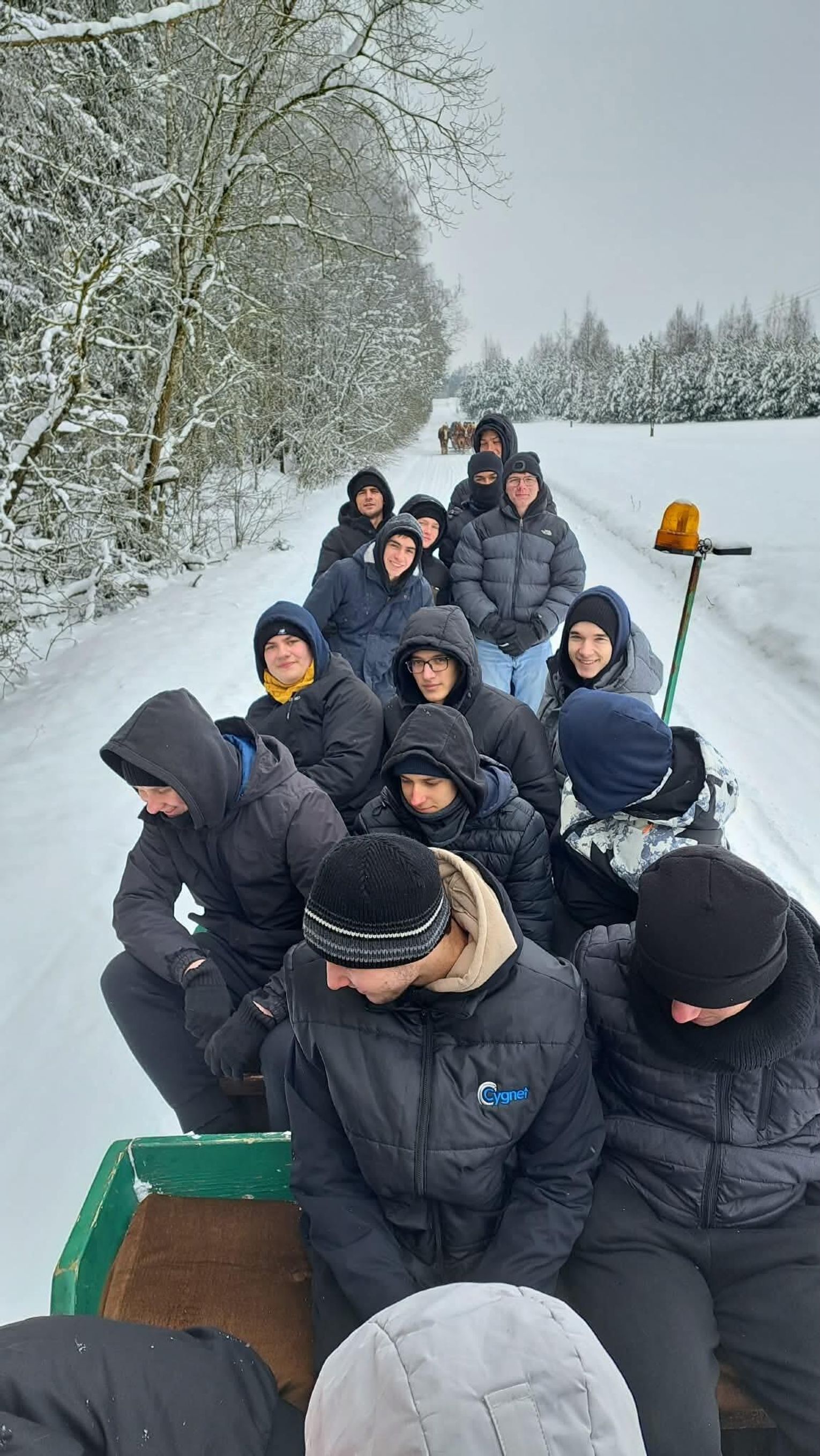 Przejażdżka saniami była tylko początkiem atrakcji. Uczniowie chętnie korzystali również ze zjazdów na jabłuszkach, które dostarczyły wielu emocji i wywołały mnóstwo uśmiechów. Po intensywnych zabawach przyszedł czas na chwilę odpoczynku przy ognisku, gdzie można było się ogrzać i skosztować pieczonych kiełbasek. Ciepła atmosfera sprzyjała rozmowom i wspólnemu spędzaniu czasu.