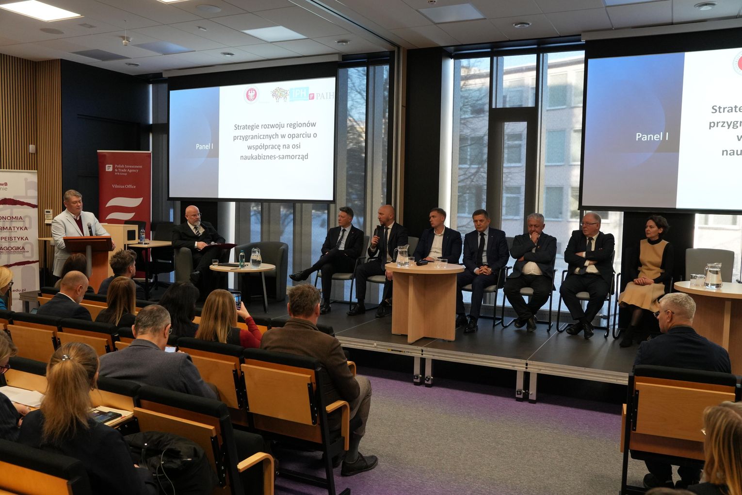 Pierwszy panel dotyczy strategii rozwoju regionów pogranicza w oparciu o współpracę na osi nauka–biznes–samorząd. Dyskusja obejmuje modele współpracy instytucjonalnej, bariery administracyjne oraz możliwości finansowania projektów rozwojowych ze środków Unii Europejskiej i funduszy regionalnych.
