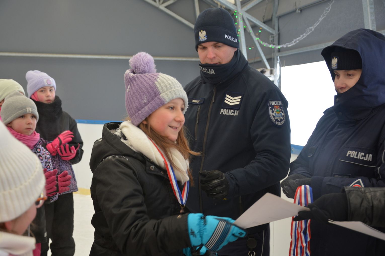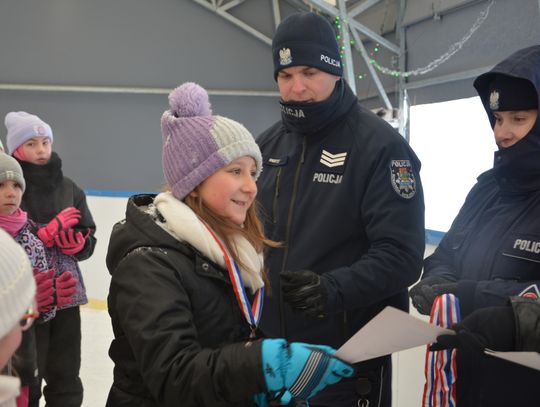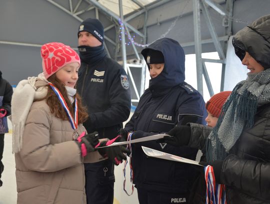 Po części edukacyjnej funkcjonariusze zorganizowali dla dzieci turniej łyżwiarski. W zawodach na lodzie udział wzięły wszystkie chętne dzieci, które z dużym zaangażowaniem rywalizowały w sportowej atmosferze. Zwycięzcy turnieju zostali nagrodzeni medalami i dyplomami, a wszyscy uczestnicy otrzymali porcję dobrej zabawy i cennej wiedzy na temat bezpiecznego spędzania ferii zimowych.