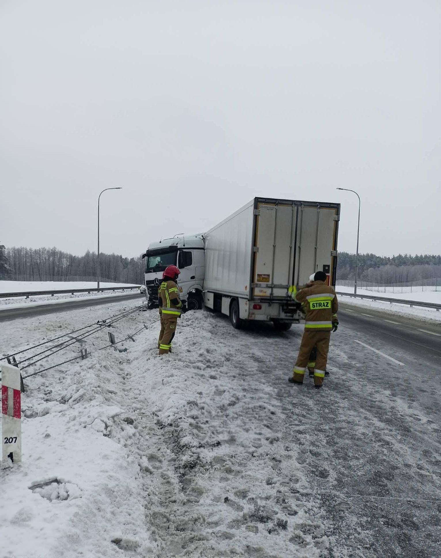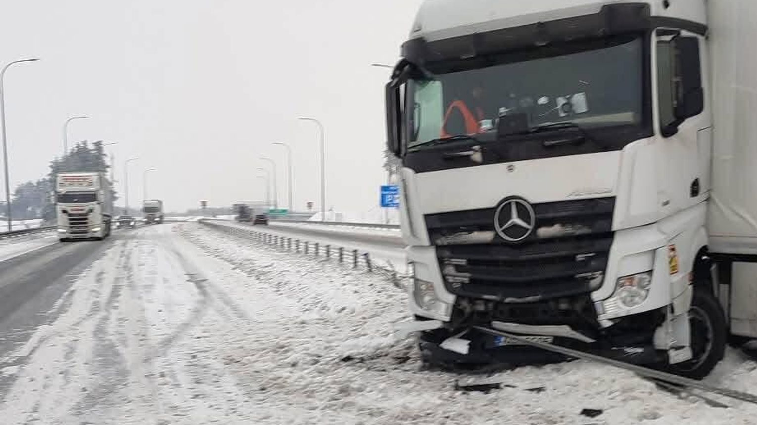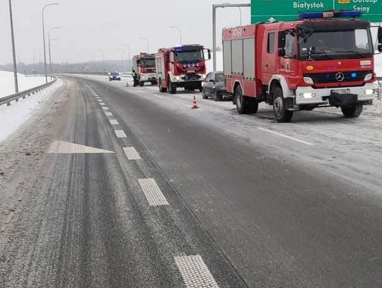 Doszło tam do kolizji pojazdu ciężarowego, który uderzył w bariery energochłonne i zablokował jeden pas ruchu. Na szczęście w wyniku zdarzenia nikt nie odniósł obrażeń.