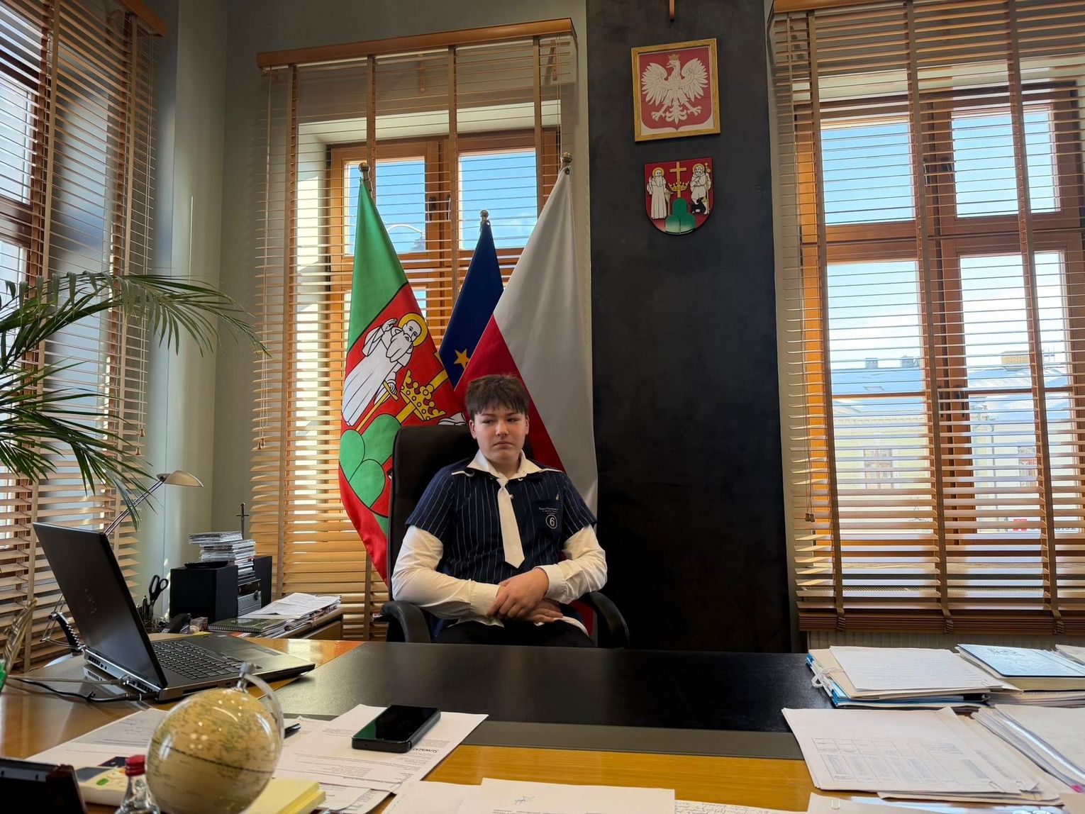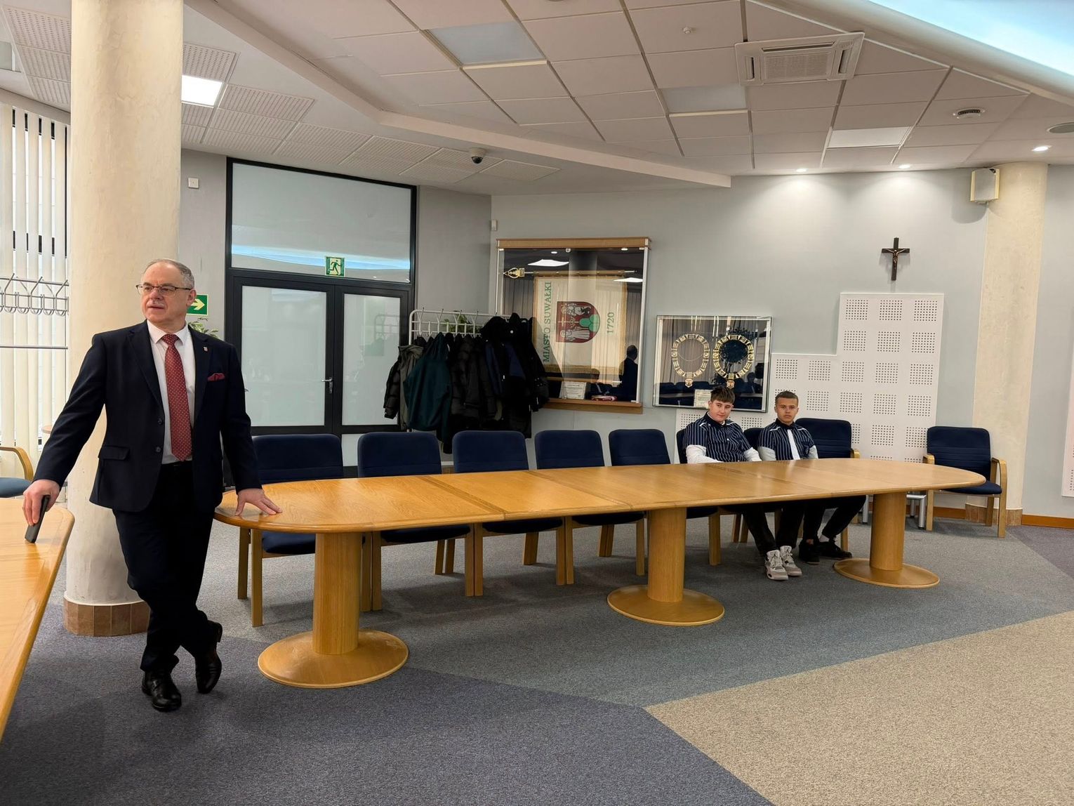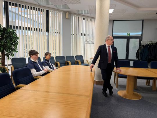 Kolejnym punktem programu było spotkanie z Prezydentem Miasta Suwałk, panem Czesławem Renkiewiczem, który opowiedział o codziennej pracy włodarza miasta oraz o sprawach, z jakimi mieszkańcy zwracają się do urzędu. Nie zabrakło także chwili na wizytę w gabinecie prezydenta i symboliczne „przymierzenie się” do fotela gospodarza miasta.