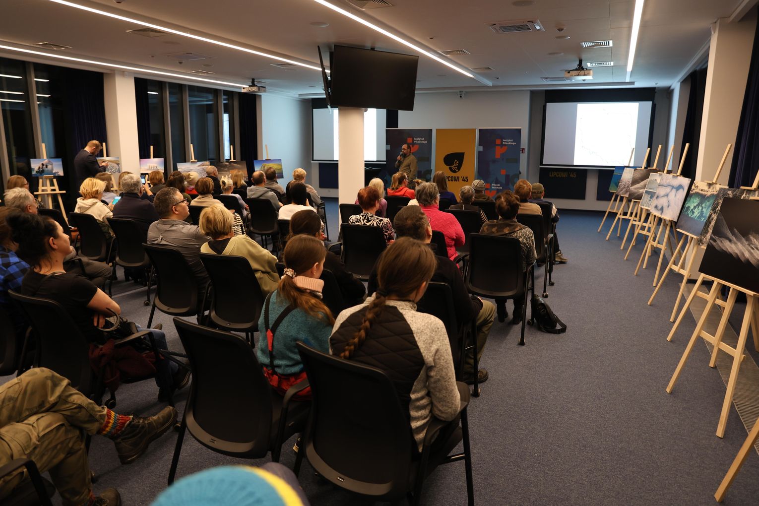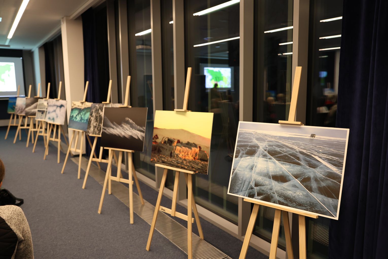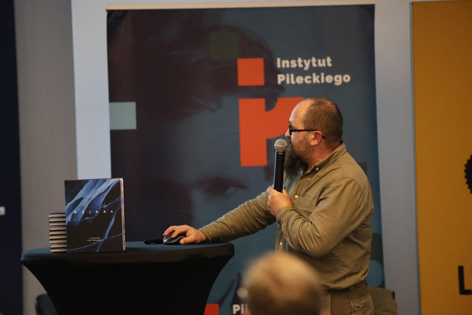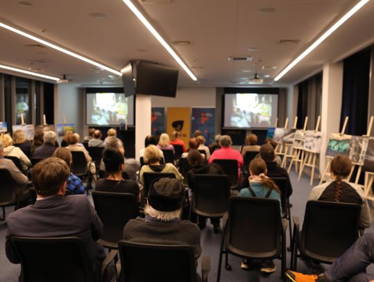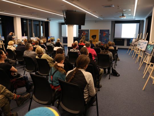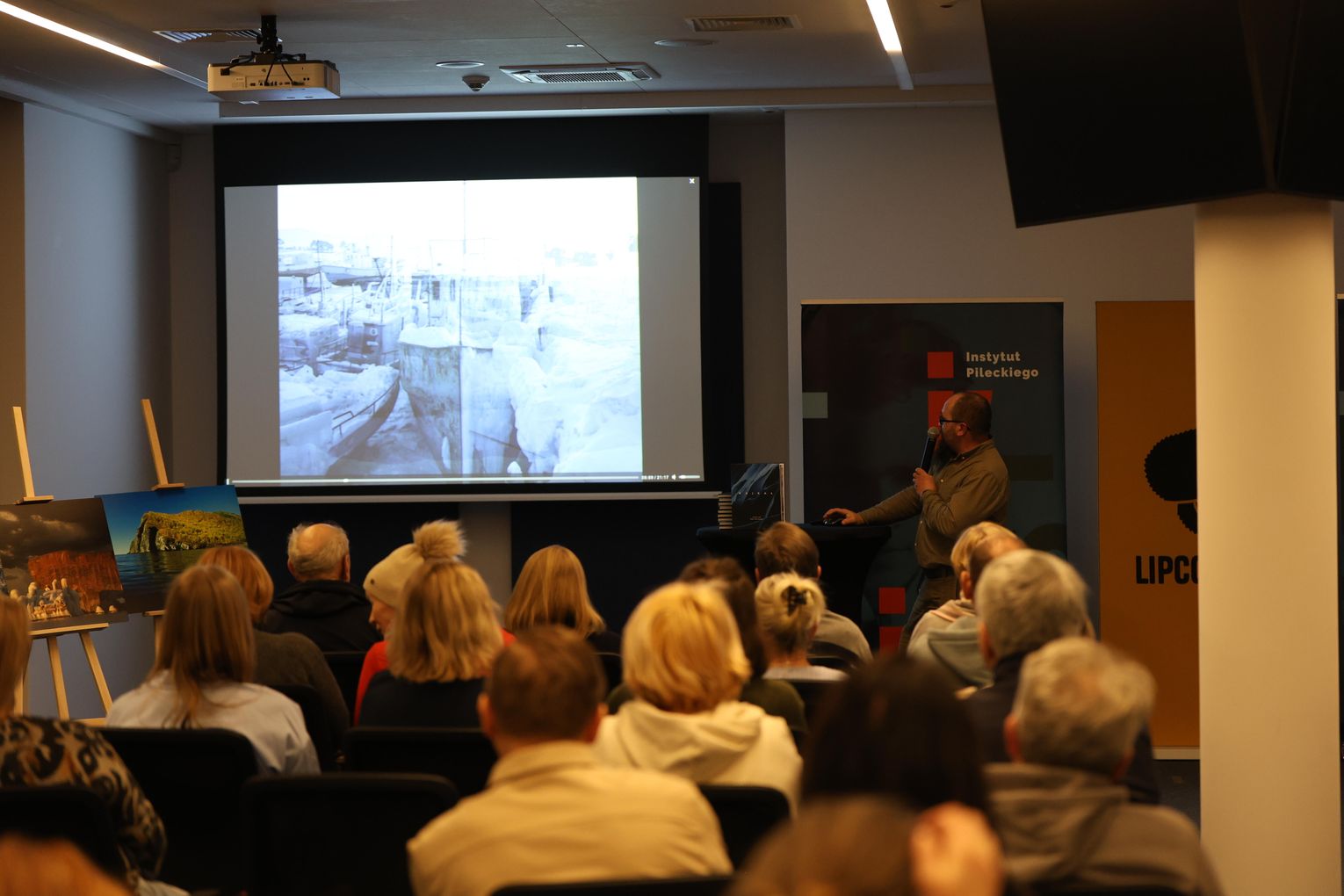 Po projekcji artysta zaprezentował slajdy ze swoimi fotografiami, które stały się punktem wyjścia do opowieści o pracy w temperaturach sięgających kilkudziesięciu stopni poniżej zera, o logistycznych wyzwaniach takich wypraw oraz o specyfice fotografowania w środowisku, gdzie natura narzuca własne tempo i reguły. Piotr Malczewski zwracał uwagę na detale widoczne na zdjęciach — pęknięcia lodu, struktury przypominające szkło, ślady wiatru i światła — które składają się na niepowtarzalny charakter zimowego Bajkału.