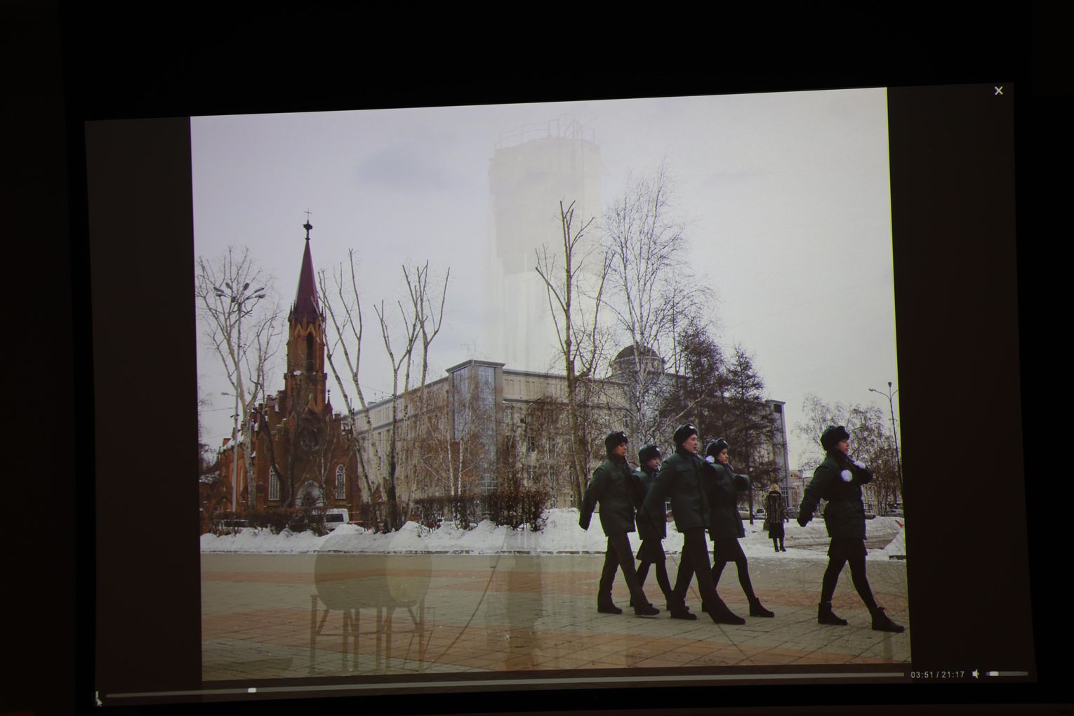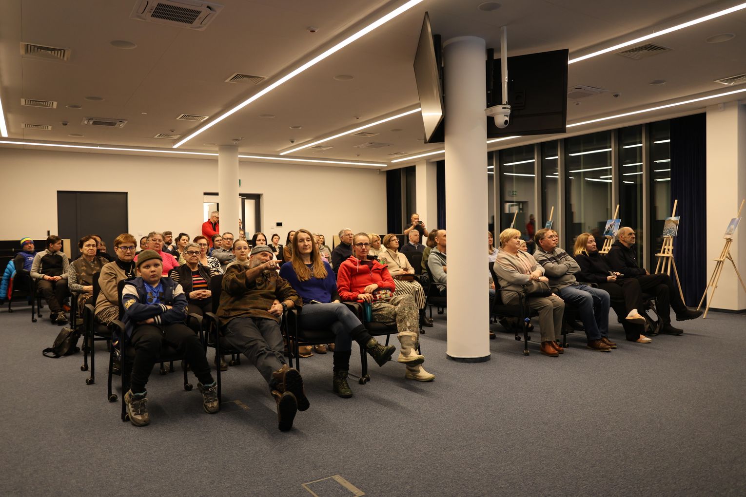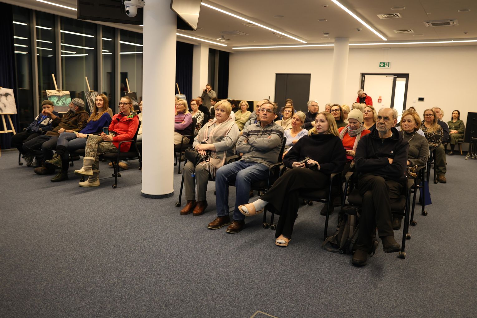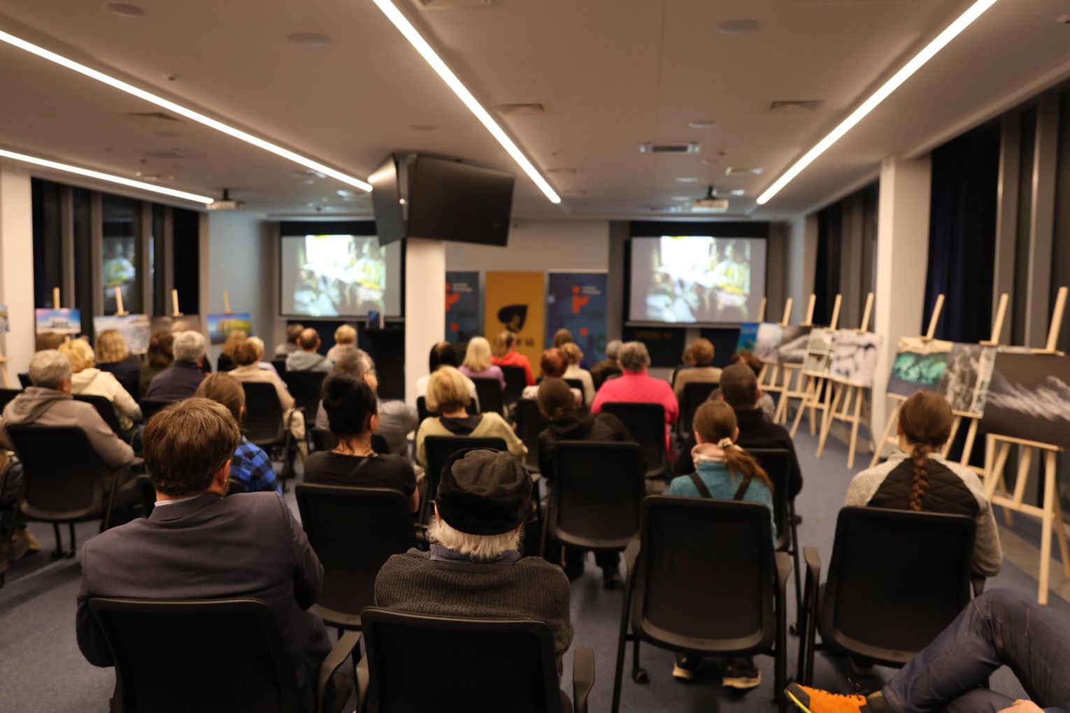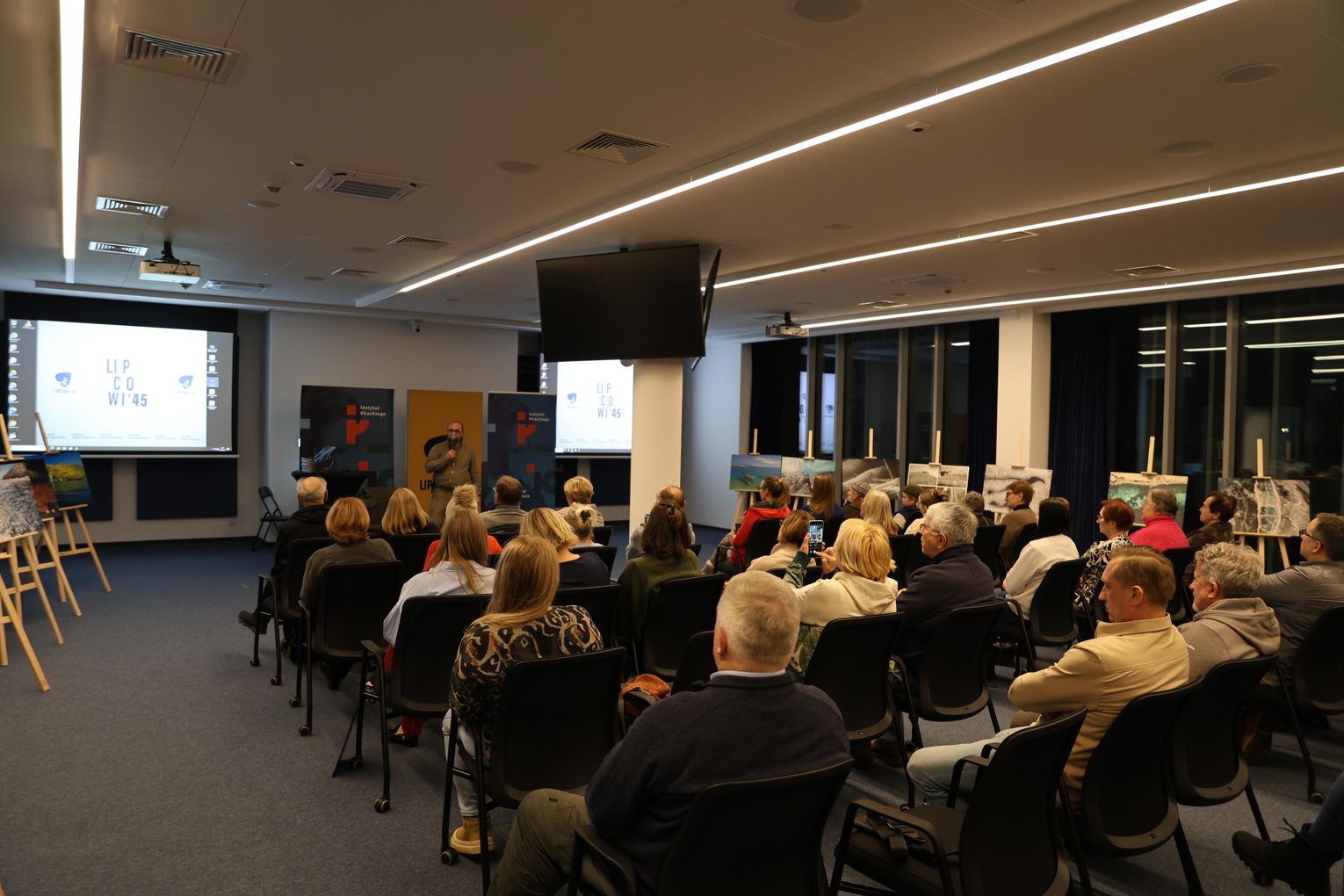 Po projekcji artysta zaprezentował slajdy ze swoimi fotografiami, które stały się punktem wyjścia do opowieści o pracy w temperaturach sięgających kilkudziesięciu stopni poniżej zera, o logistycznych wyzwaniach takich wypraw oraz o specyfice fotografowania w środowisku, gdzie natura narzuca własne tempo i reguły. Piotr Malczewski zwracał uwagę na detale widoczne na zdjęciach — pęknięcia lodu, struktury przypominające szkło, ślady wiatru i światła — które składają się na niepowtarzalny charakter zimowego Bajkału.