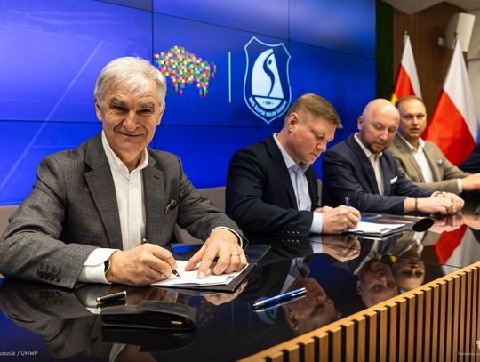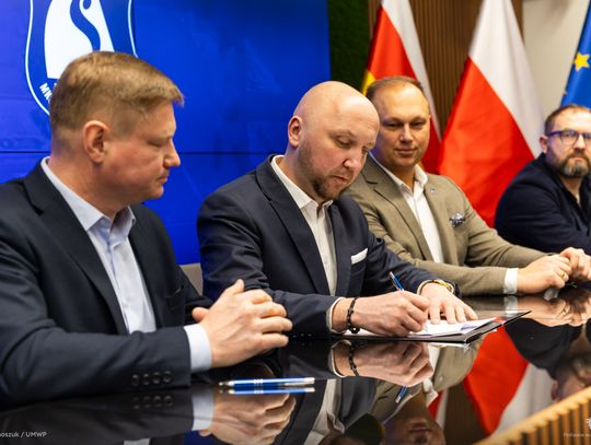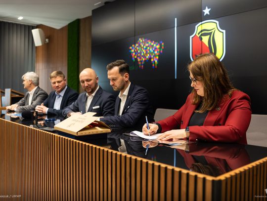 Umowy na dotacje podpisali w piątek, 20 lutego: marszałek Łukasz Prokorym, wicemarszałek Marek Malinowski, członek zarządu Bogdan Dyjuk oraz przedstawiciele klubów.