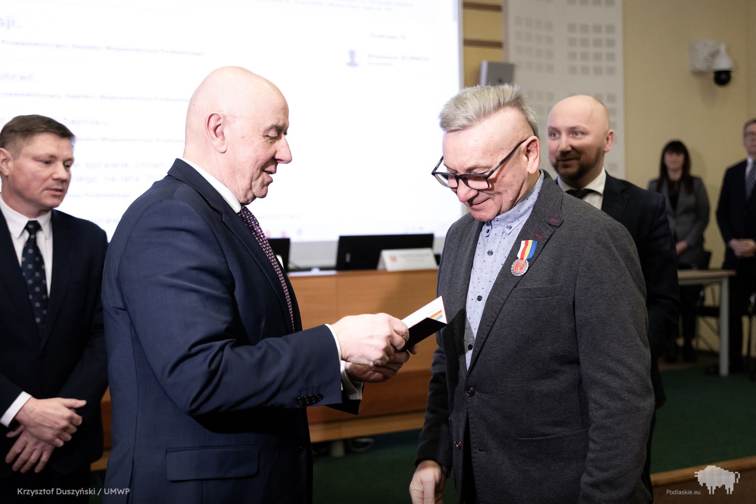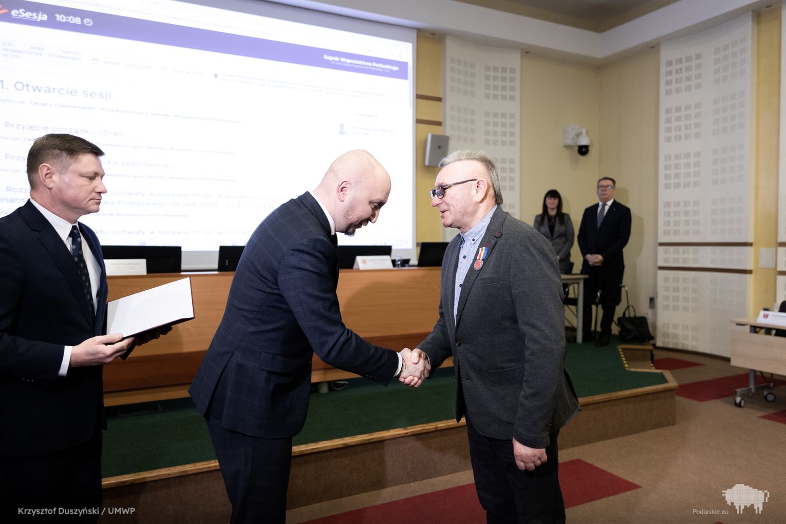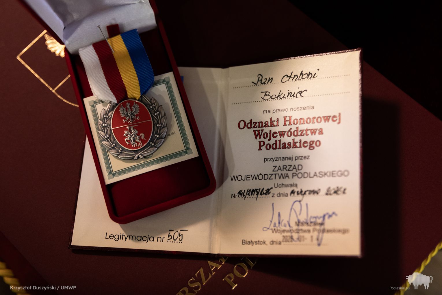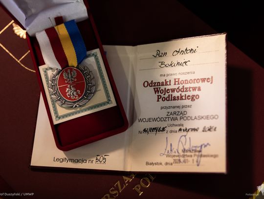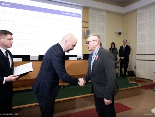 Wtorkowe obrady rozpoczęły się od uroczystego akcentu. Z inicjatywy wicemarszałka Marka Malinowskiego wręczono Honorową Odznakę Województwa Podlaskiego Antoniemu Bokińcowi z Łap – zasłużonemu dawcy krwi.