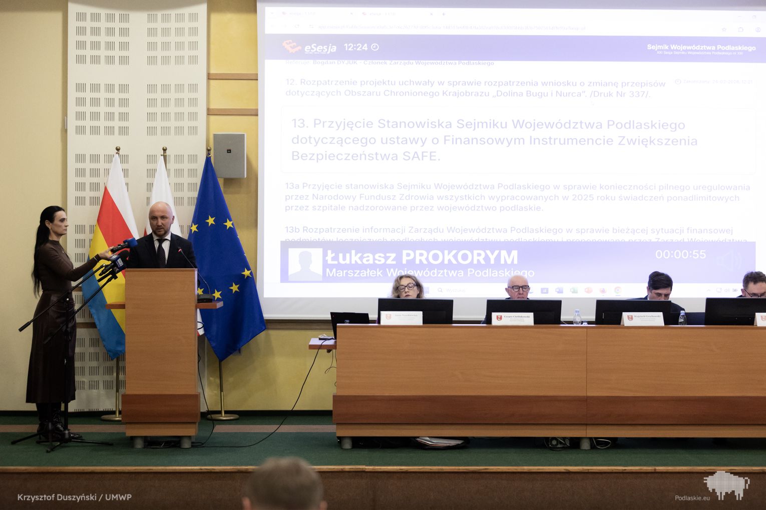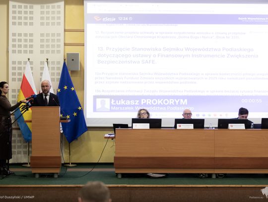 Do porządku obrad wprowadzono stanowisko w sprawie konieczności uregulowania przez Narodowy Fundusz Zdrowia wszystkich wypracowanych w 2025 r. ponadlimitowych świadczeń przez szpitale nadzorowane przez Województwo Podlaskie.