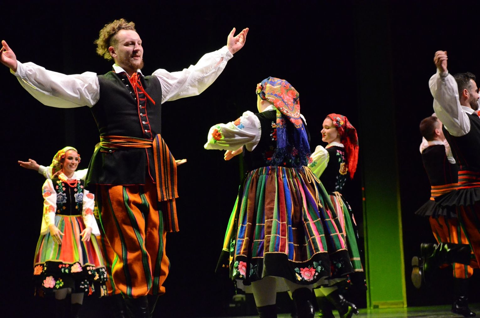 Wieczór wypełniły barwne choreografie oraz dynamiczne kompozycje muzyczne, które od lat stanowią wizytówkę zespołu. W programie znalazły się m.in. tańce suwalskie, huculskie, kujawiak z oberkiem, a także efektowne popisy kapeli. Różnorodność repertuaru podkreśliła bogactwo polskiej kultury ludowej oraz kunszt artystyczny wykonawców.