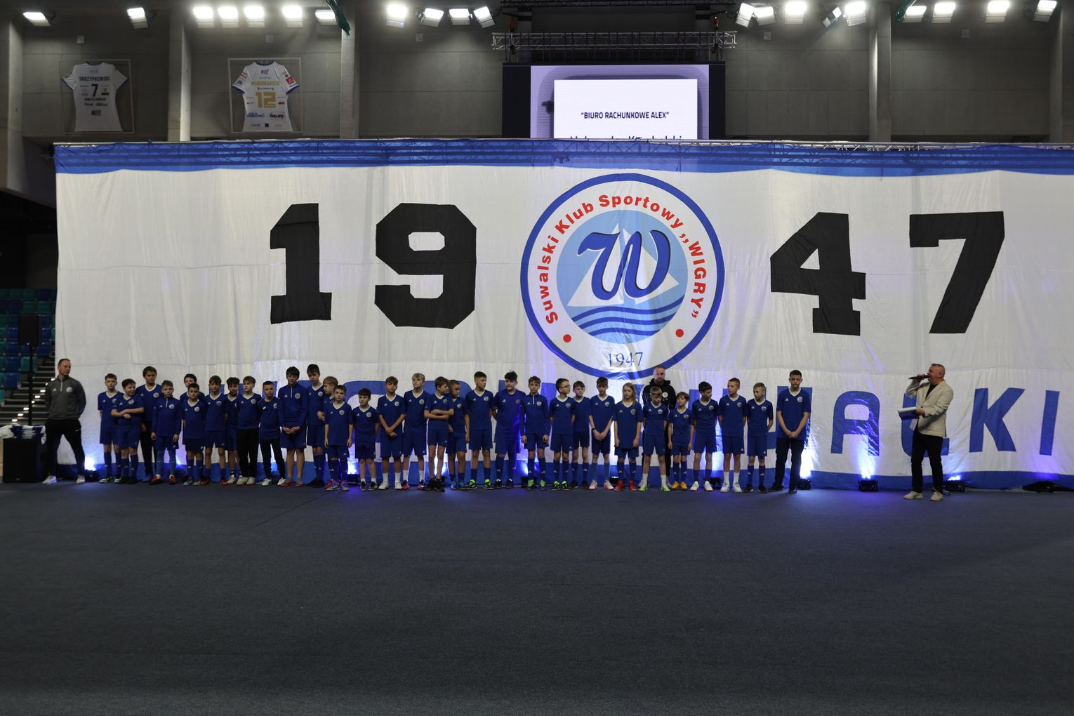 W wydarzeniu uczestniczyły wszystkie roczniki Akademii – od najmłodszych adeptów futbolu po starsze grupy młodzieżowe. Zawodnicy prezentowali się drużyna po drużynie, w towarzystwie swoich trenerów. Kulminacyjnym momentem uroczystości było wspólne, pamiątkowe zdjęcie niemal 500 wychowanków Akademii, piłkarzy pierwszego zespołu, legend klubu oraz zaproszonych gości. To imponujące grono pokazało skalę i siłę piłkarskiej rodziny Wigier.