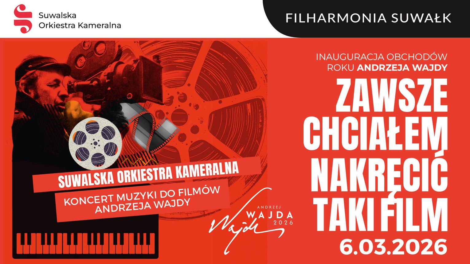 6 marca przypada dokładnie setna rocznica urodzin Andrzeja Wajdy. Z tej okazji w Suwalskim Ośrodku Kultury odbędzie się koncert inauguracyjny zatytułowany „Zawsze chciałem nakręcić taki film”. Suwalska Orkiestra Kameralna wykona utwory z filmów reżysera, a gościem specjalnym będzie aktor Mirosław Baka, który odczyta fragmenty zapisków artysty.