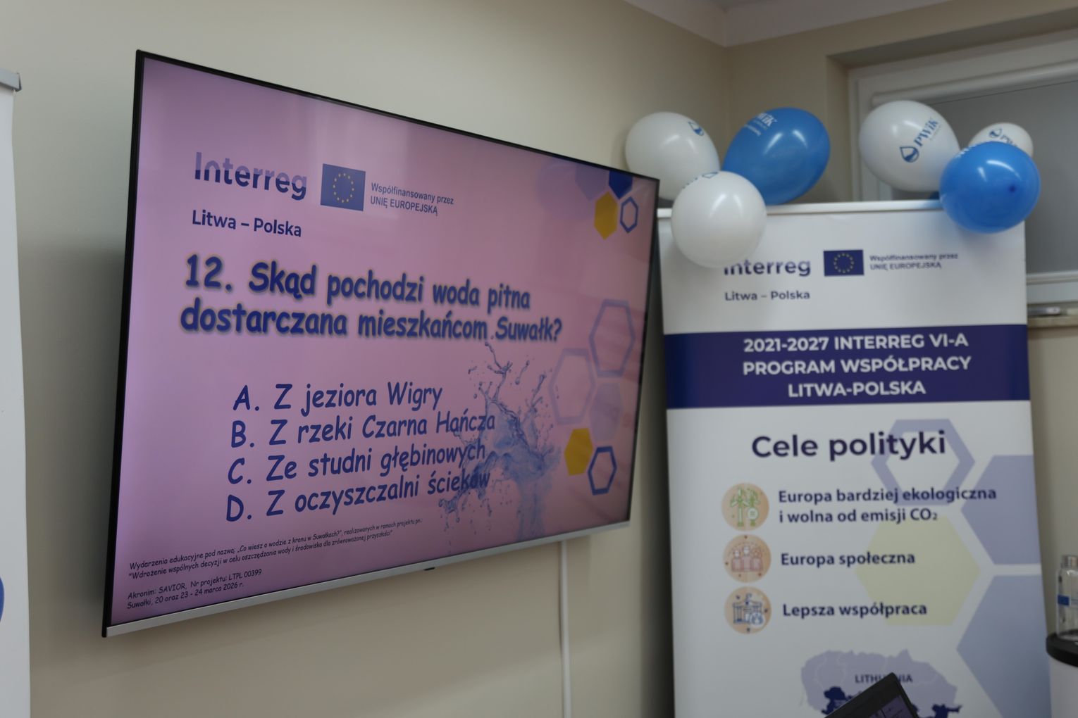 Wydarzenie zostało zrealizowane w ramach projektu SAVIOR (nr LTPL 00399), współfinansowanego ze środków Unii Europejskiej w ramach Programu Współpracy Transgranicznej Interreg VI-A Litwa–Polska 2021–2027. Partnerem projektu jest przedsiębiorstwo wodociągowo-kanalizacyjne z litewskiej Olity – UAB „Dzūkijos vandenys”.