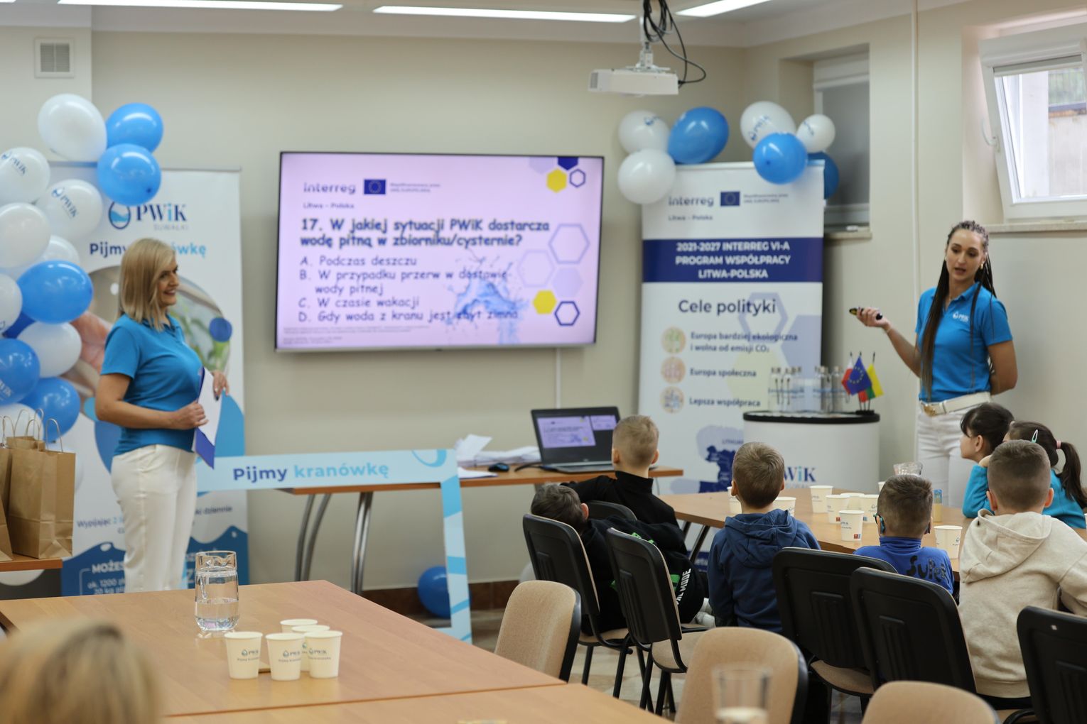 Celem spotkania było kształtowanie odpowiedzialnych postaw ekologicznych, promowanie picia wody z kranu oraz zachęcanie do korzystania z butelek wielorazowych. Nie zabrakło także tematów związanych z higieną i zdrowym stylem życia.