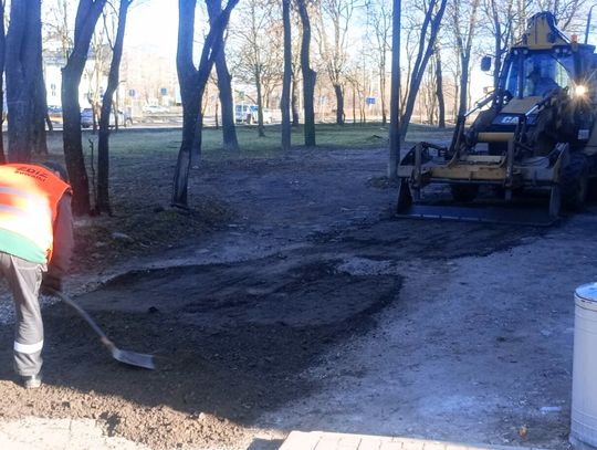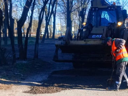 Równolegle prowadzone są prace na ulicy Pułaskiego 24, gdzie drogowcy zajęli się uzupełnianiem ubytków w nawierzchni.