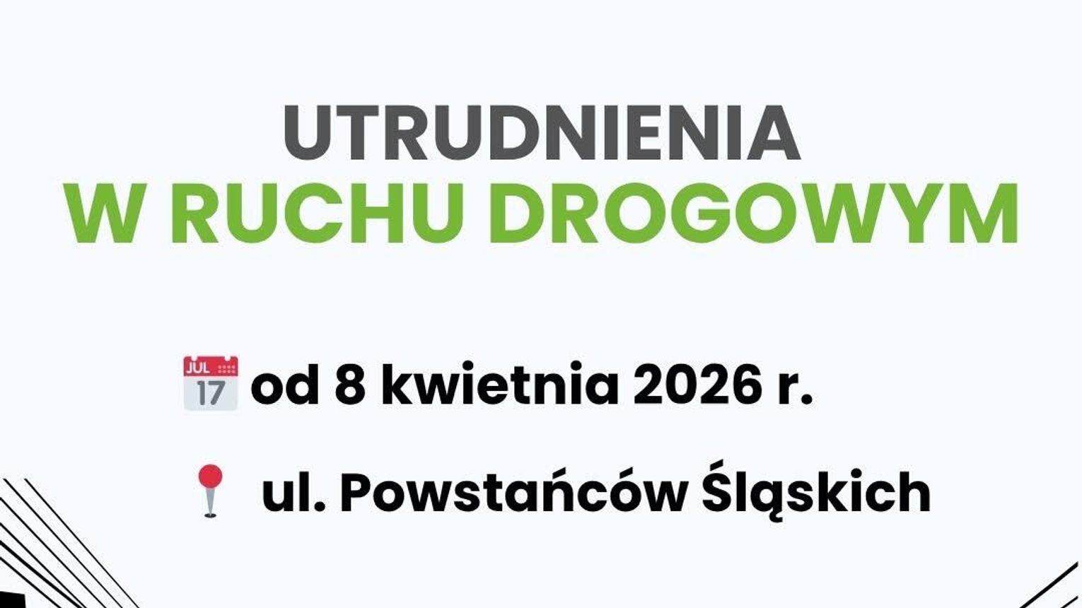 Utrudnienia odczują również piesi — w niektórych miejscach mogą pojawić się zmiany w przebiegu chodników lub ich czasowe wyłączenia z użytkowania. Służby apelują o szczególną ostrożność oraz stosowanie się do oznakowania, które ma zapewnić bezpieczeństwo w trakcie trwania prac.
