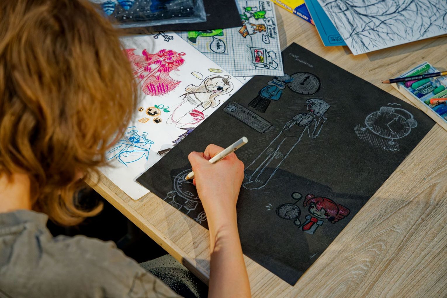 Podczas zajęć uczestnicy pracowali w otoczeniu rysunków i obrazów, tworząc własne, niepowtarzalne prace. Nie zabrakło również autorskich projektów, które pod okiem prowadzącego zyskały nowy, artystyczny charakter.