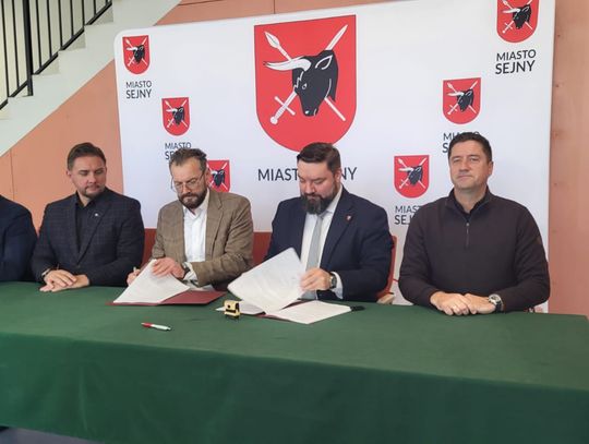 W Ośrodku Kultury w Sejnach odbyło się podpisanie umowy dotyczącej realizacji zadania „Przebudowa ul. Nowej w Sejnach wraz z budową urządzeń towarzyszącej infrastruktury technicznej”. Tym samym inwestycja formalnie weszła w etap realizacji.